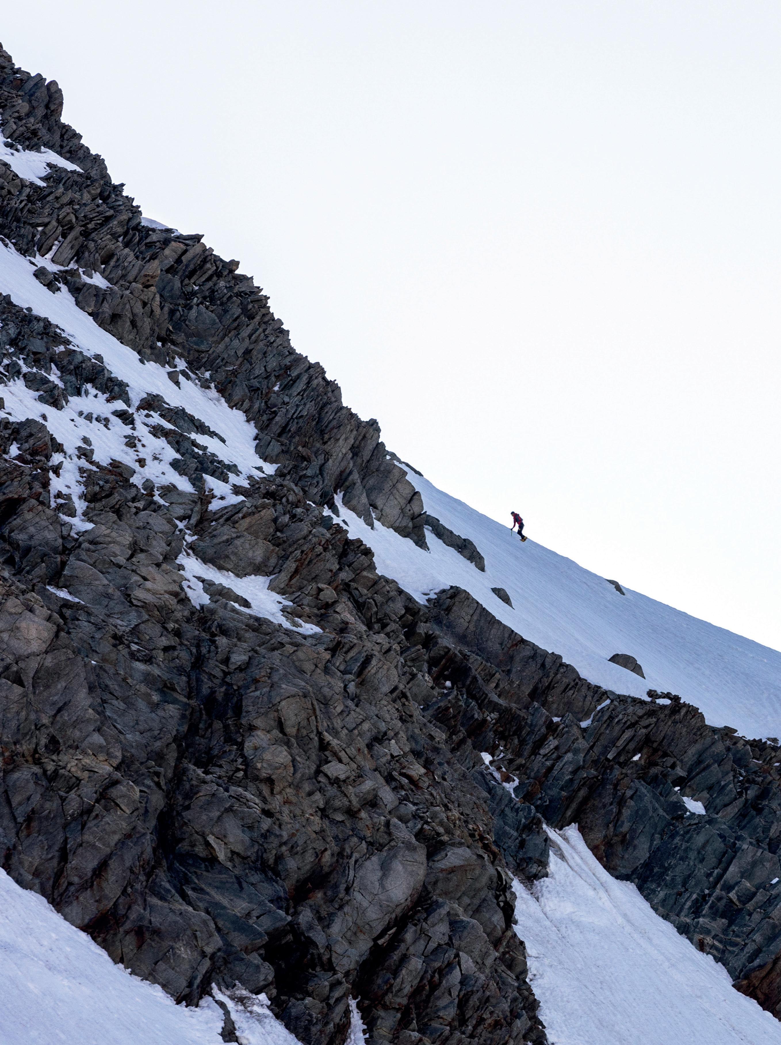 Dopo quasi un’ora di salita, a pochi metri dalla vetta del Bric Ghinivert, in alta Val Troncea, mi sento mancare le energie. Il vento gelido dei 3000 metri di quota mi taglia il fiato, mi gira la testa e le gambe pesano come macigni. Annaspo cercando di inalare quanto più ossigeno possibile e mi arrampico con le mani tra i massi di granito, seguendo una traccia approssimativa. Alzo lo sguardo e Aymo mi fa un cenno urlandomi qualcosa, affacciato da uno dei bracci della croce di vetta. Un paio di minuti dopo, superata una cengia esposta sulla parete sud, lo raggiungo e mi rannicchio in una fessura al riparo dal vento. Una coppia di gi-