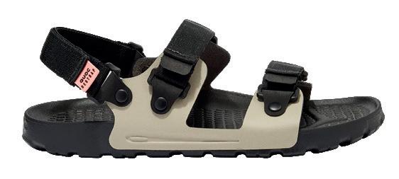 Osservando la suola, vediamo due tipi di gomma, con una doppia densità – uno morbido al centro, uno duro all’esterno – che imitano ed esaltano nel design la forma a V dello zoccolo.