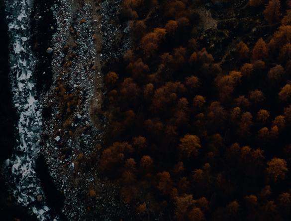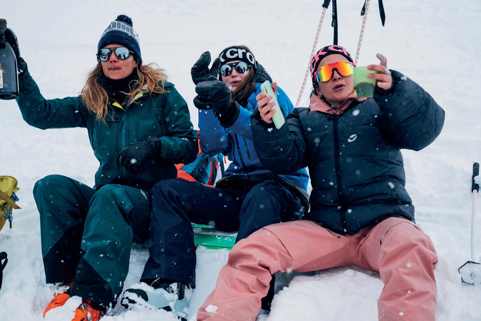 ginazione. Risaliamo un grande campo privo di tracce umane, passando vicino a qualche albero piantato qua e là, infine attraversiamo un gruppo di vecchi casolari, quasi dei ruderi, con i vetri rotti. La passeggiata invernale d'altri tempi continua fino alla ricomparsa del pick up blu elettrico. L’arrivo è imminente. L’ingresso al piccolo borgo sembra quello di un ranch del Far West. Il cottage è costituito da vecchi edifici assemblati dal nostro amico italiano, nonché sindaco di Valgrisenche. Riccardo ci ospita nel primo granaio che è costituito da quattro angoli notte, una mansarda, una grande cucina e un bagno che sembra uscito da una rivista di home decor. Il tutto a meno di 20€. Inauguriamo il nostro arrivo con un gesto aristocratico sciabolando lo champagne con l'aiuto di uno sci affilato. Non c’è niente di più soddisfacente di andare a letto vedendo una coltre bianca per poi alzarsi con un cielo azzurro. È il 2021, un anno che oscilla tra l’isolamento e la chiusura delle frontiere. Le montagne sono deserte e in questo mese di marzo gli elicotteri non volano. Silenzio e polvere bianca ci vengono serviti su un piatto d’argento.