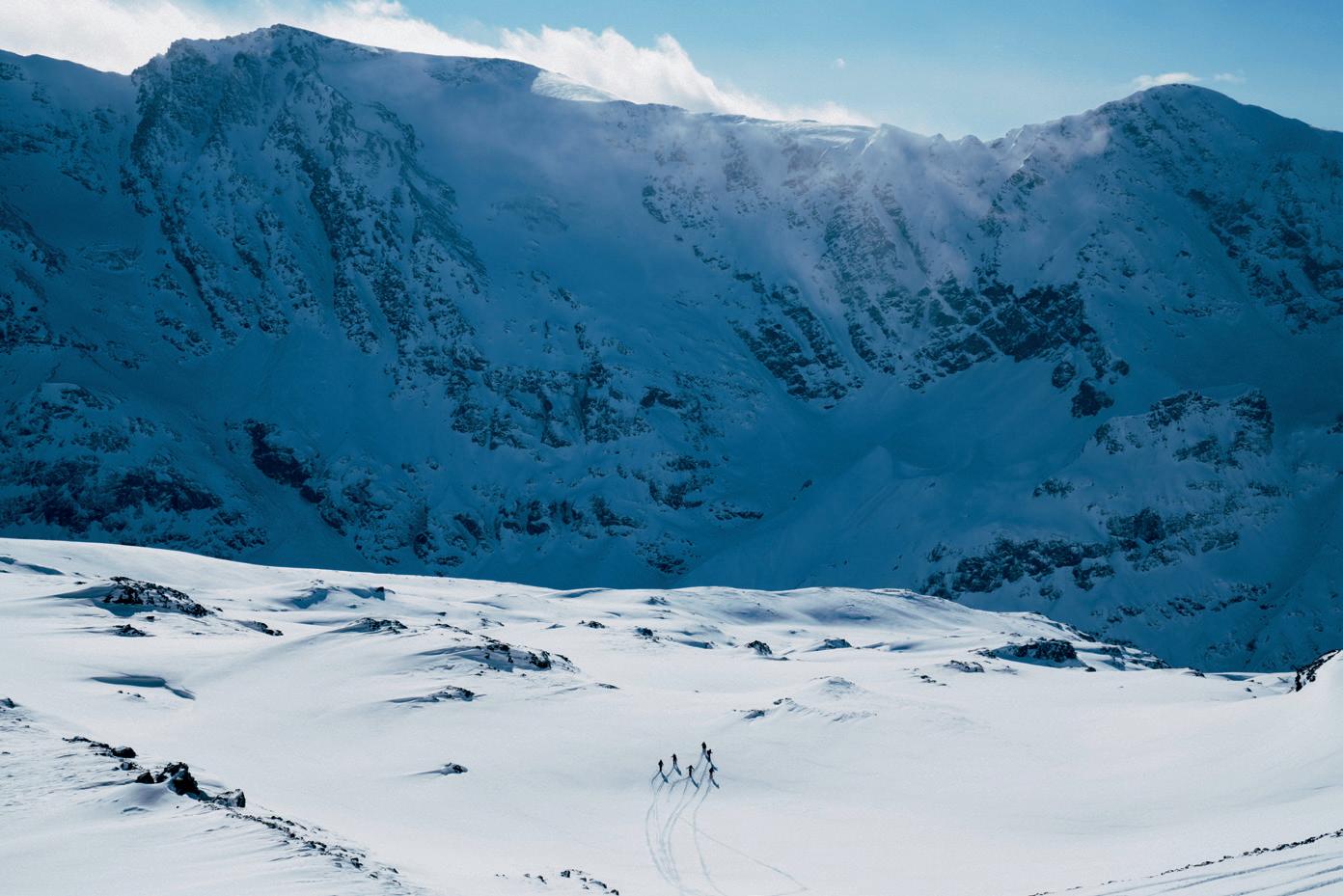 ultimo giorno sarà lungo, la traversata che ci separata dall’ultima discesa è ventosa. Lame e ramponi mordono la neve con i loro denti affilati.