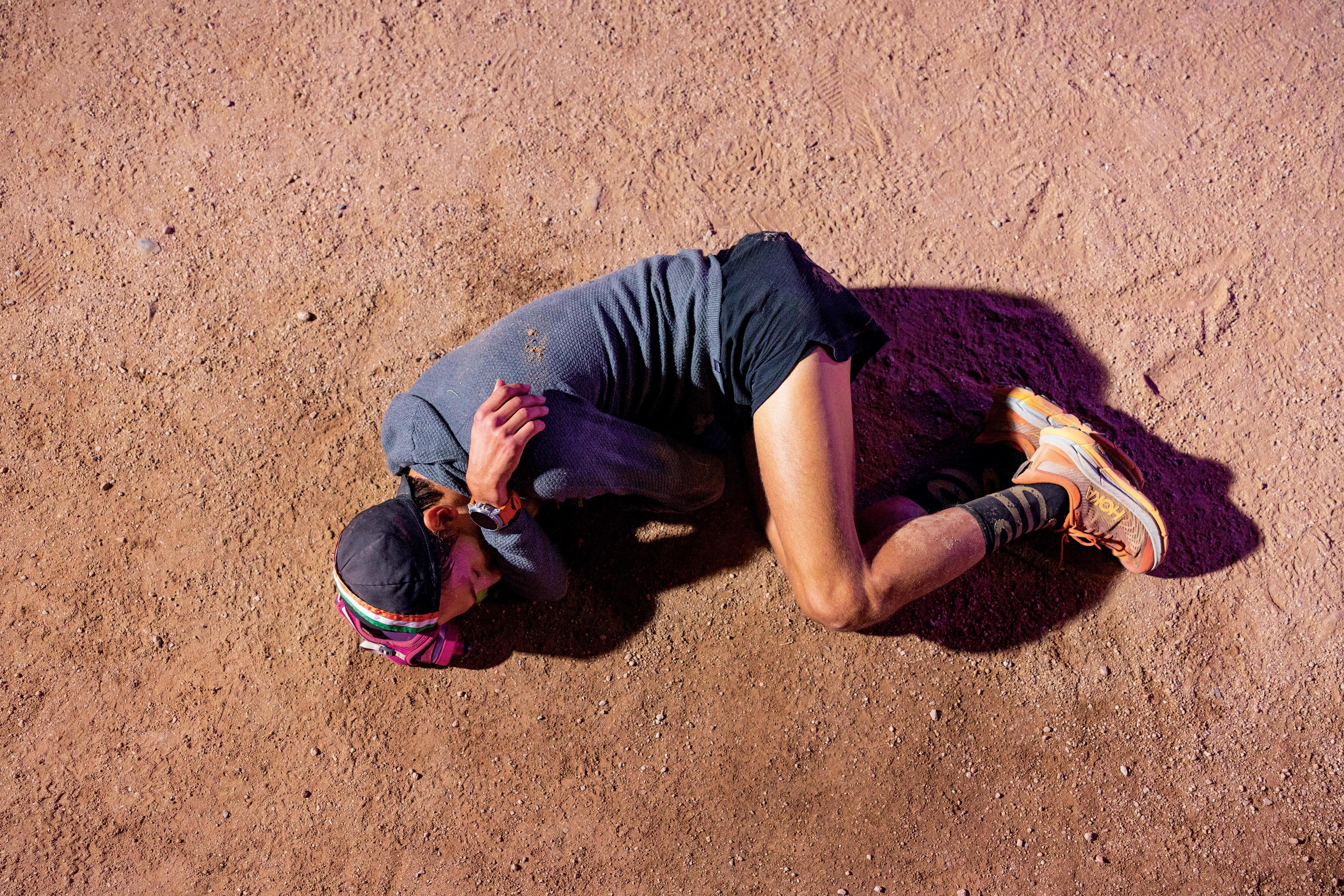 The last few miles go through a dark narrow valley. Then comes the sound of music and only then you see it. It's like having your eyes closed, then you open them and you see it: the light. I run, I run fast, I run the fastest kilometer of the race. How much time has passed? I do not know. I'm lying with my head resting on my water bottles below the finish line. A little time passes by, I don't know how much, minutes, hours. Then I get up, and there it is. The buckle.