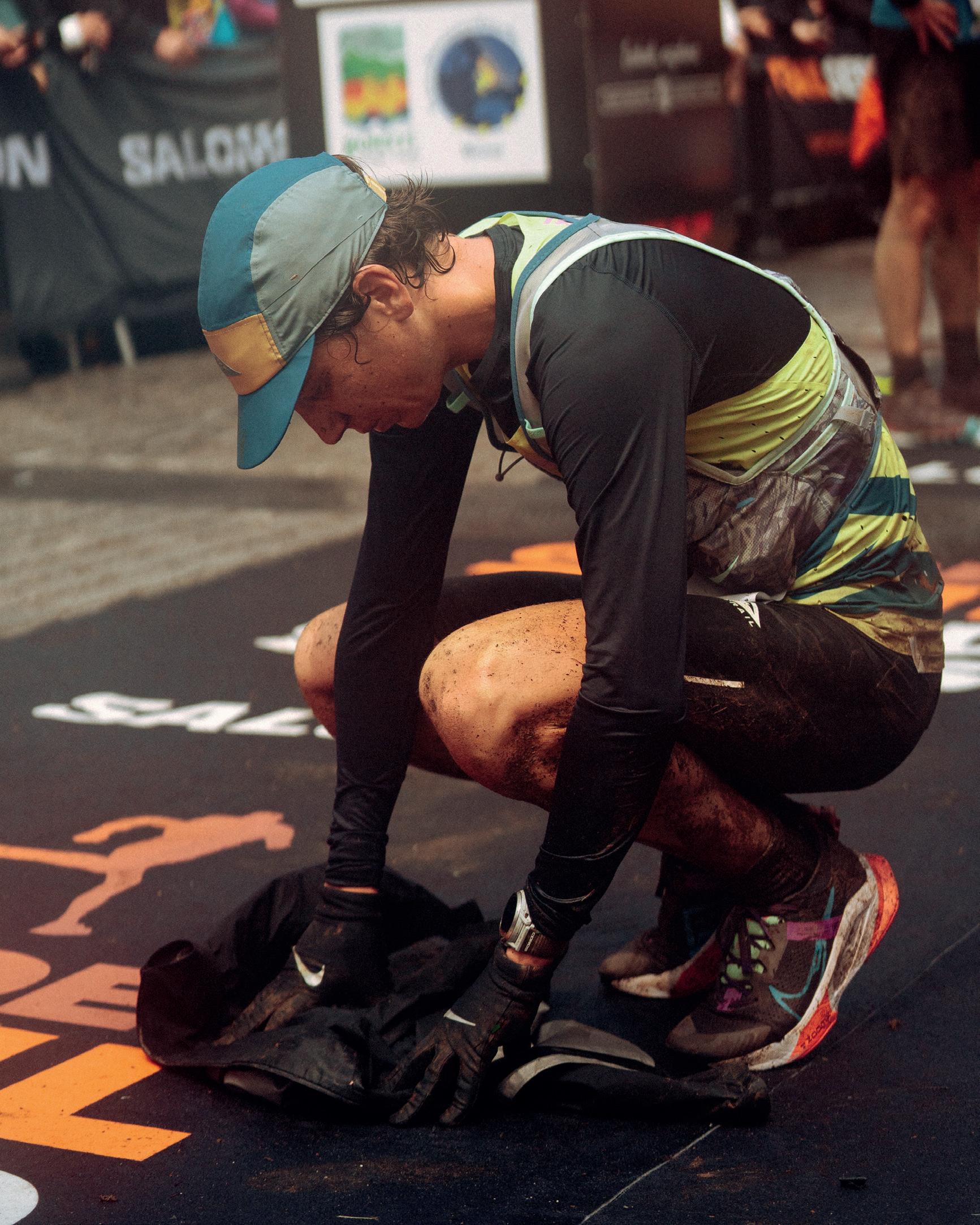 Le ultime miglia percorrono una stretta valle buia. Poi arriva il suono della musica e soltanto dopo la vedi. È come avere gli occhi chiusi, poi li apri e la vedi: la luce. Corro, corro veloce, corro il chilometro più veloce della gara. Quanto tempo è passato? Non lo so. Sono steso con la testa appoggiata alle borracce sotto la linea d’arrivo. Passa un po’ di tempo, non so quanto, minuti, ore. Poi mi alzo, ed eccola lì. La fibbia.