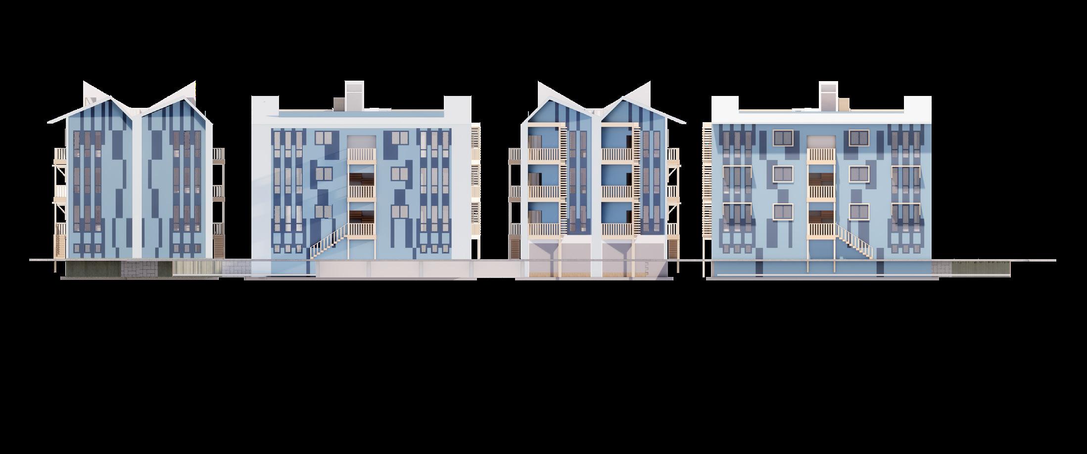 Azure Heights, located on the corner of E. 16th St. and Central Ave. in Indianapolis, are rowhouses that consist of high-density housing. With five studio apartments and a two-bedroom apartment in each rowhouse, this design maximizes the space in order to promote sustainable urban density. The design also consists of solar shading, operable windows, and a solar chimney that assist with cooling as well as large windows that help with solar heating in the winter. Porches are located on three sides of the building and residents have access to a roof deck that is located next to the buildings’ green roof.