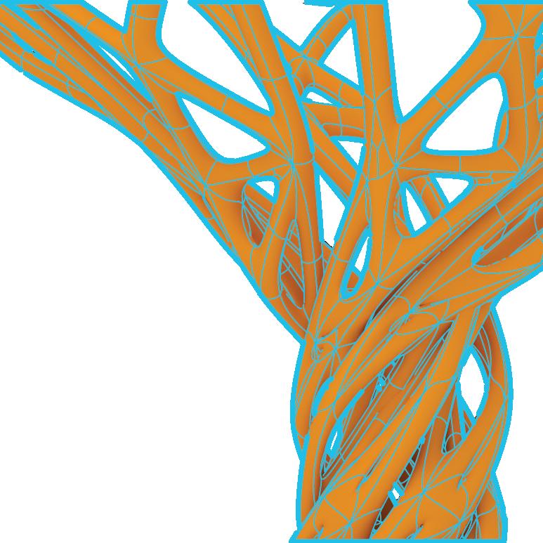 the Phase 1 Column was designed with an upright branching pattern in mind. Webbing is implimented into the design for stability. The branches are connected through a circle shape which was formed through the 3 points extracted from the point cloud.