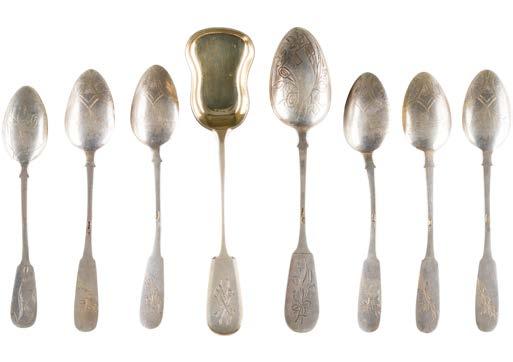 A COLLECTION OF EIGHT BRASS ICONS DEPICTING SELECTED SAINTS AND THE NATIVITY OF THE MOTHER OF GOD Russian, 18th/19th century