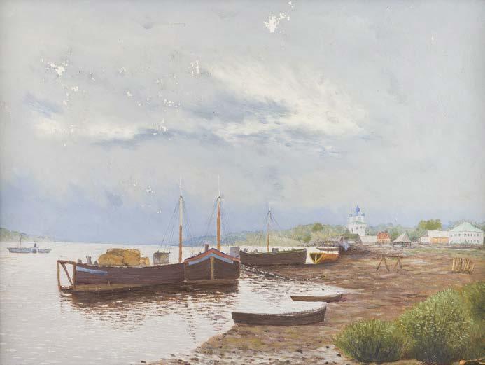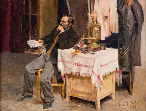 Colour lithography, partially gilded rims. Each on the bottom with factory mark and Cyrillic inscription ‚After orig. drawing of N. Karazin. Reproduction forbidden‘. Edges part. rubbed, one plate slightly chipped. 16-40.4 cm long.