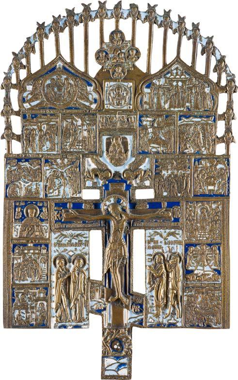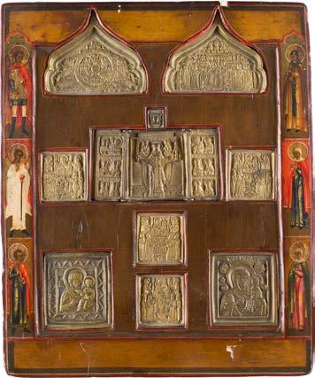 A BRASS AND ENAMEL TETRAPTYCH SHOWING LITURGICAL FEASTS OF THE ORTHODOX CHURCH YEAR
