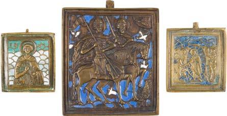360 | SAMMLUNG VON DREI BRONZE IKONEN: SCHLEIERWUNDER (POKROW) SOWIE AUSGEWÄHLTE HEILIGE