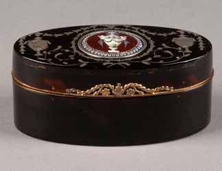 Frankreich, um 1780 Schildpatt, Silberintarsien, Email, vergoldete Metallmontierung. L. 7,8 cm.