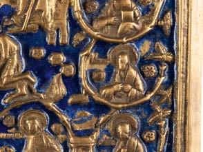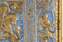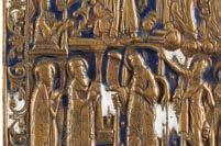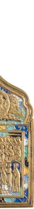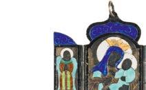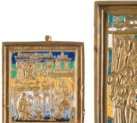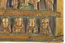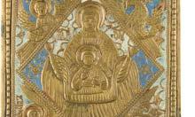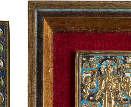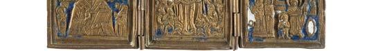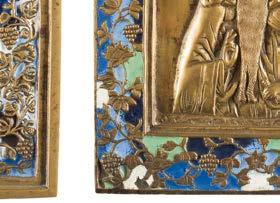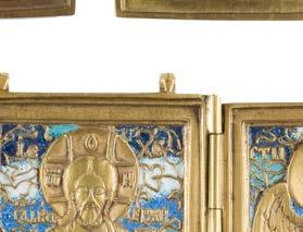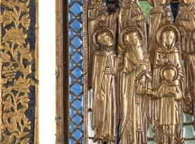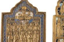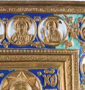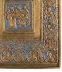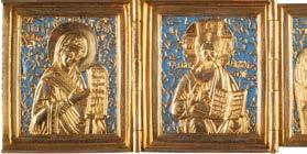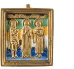 848 | MONUMENTALE CLOISONNÉ-EMAIL-IKONE MIT DER HEILIGEN DREIFALTIGKEIT UND ZWEI MÖNCHEN