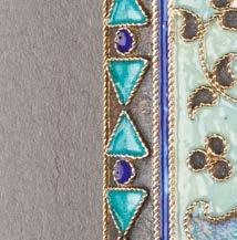 Holztafel, verso Stoffabdeckung. Messing, vollständig emailliert. CabochonBesatz. 39,4 x 26,5 cm. Email min. best.