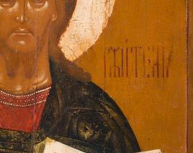 844 | ZWEI GROSSE IKONEN: SIGNIERTE UND DATIERTE IKONE MIT DEN HEILIGEN KOSMAS UND DAMIAN UND JOHANNES DER VORLÄUFER