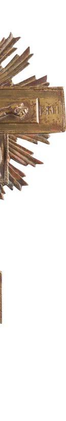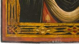 Oil on wood panel. Executed against a golden background. Applied metal crowns set with paste. On the reverse label ‚NICOLAUS MAURON [...] 1881 Num. 762‘. Losses. 84.5 x 59 cm (with carved wooden frame).