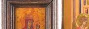 Oil on wood panel with kovcheg. Against a golden background / oil on canvas. Paint blisterings. 39.8 x 30 cm / 46.7 x 37 cm.