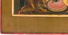 Eitempera auf Kreidegrund auf Holz, partielle Vergoldung. 16,5 x 13,8 cm
