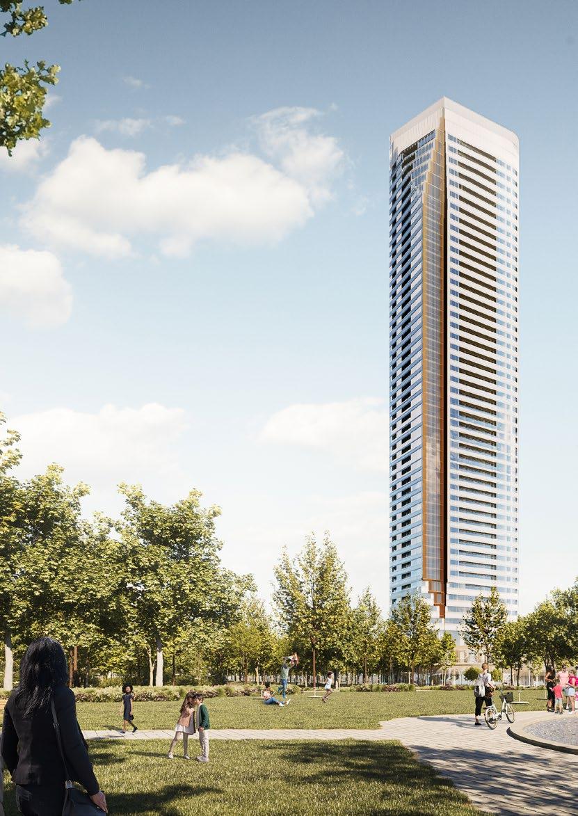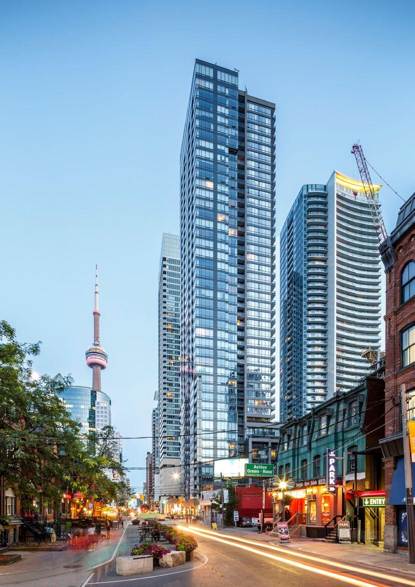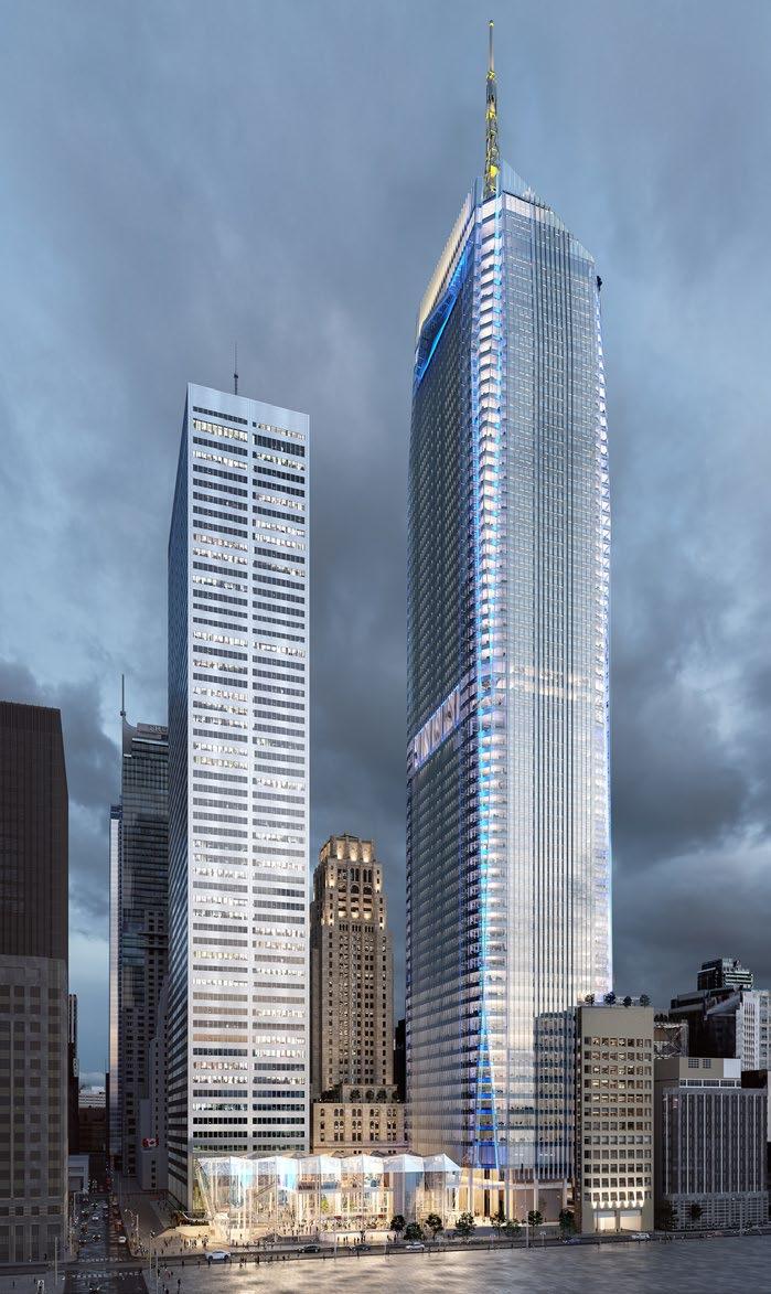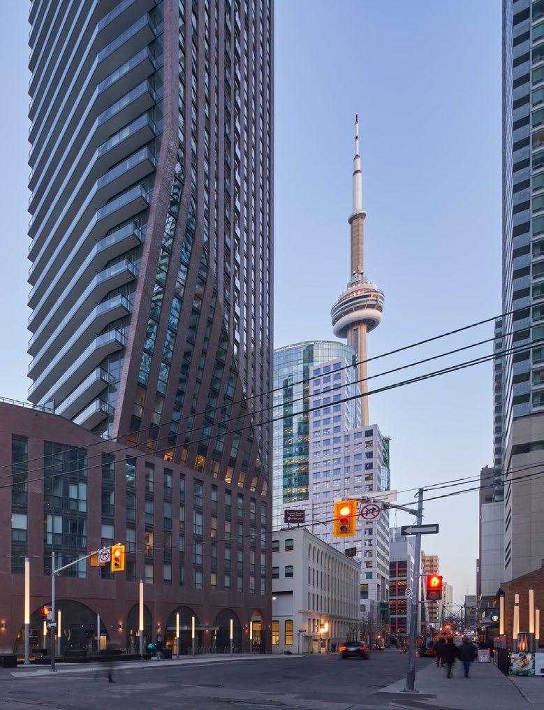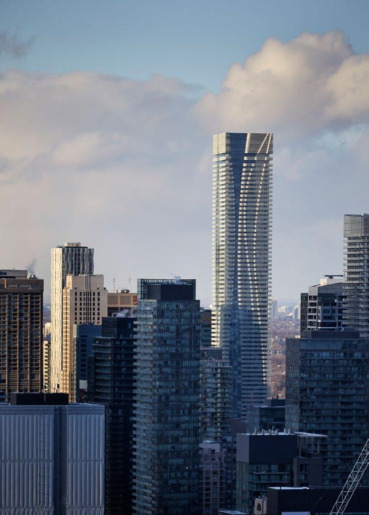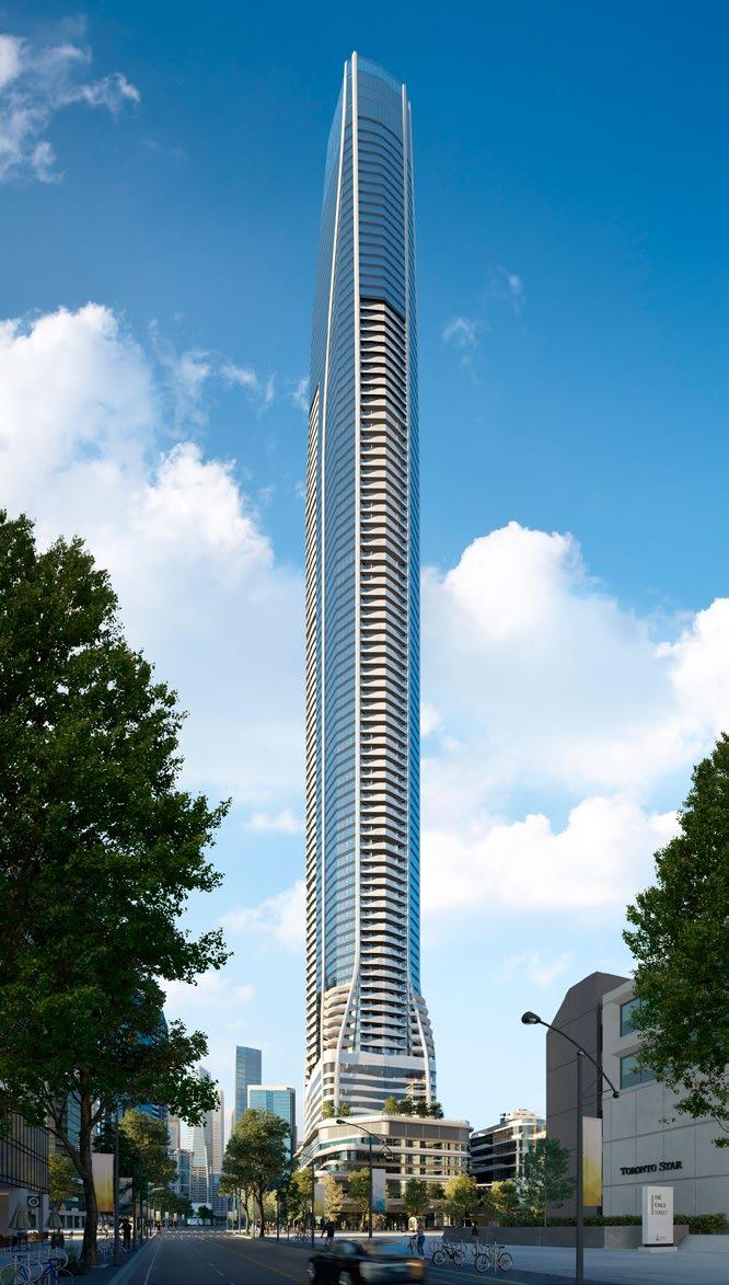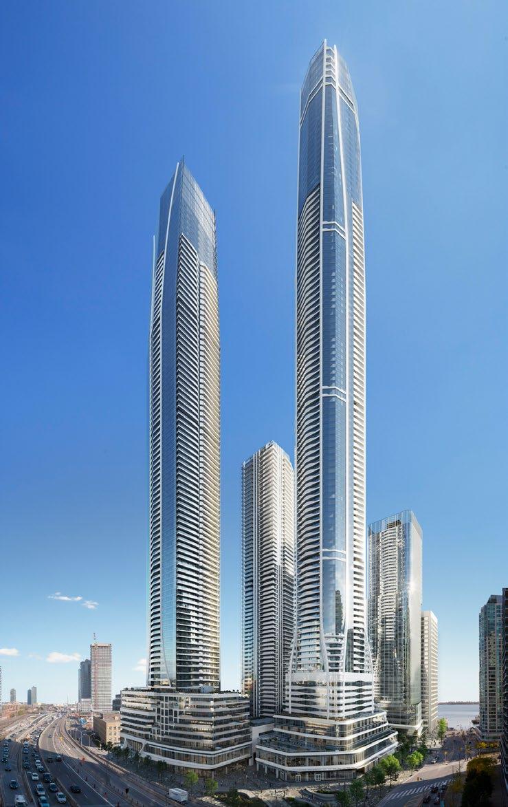 just yards away from Toronto’s CN Tower, the high-rise development will dramatically change the skyline as viewed from Lake Ontario”