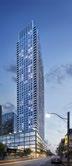 Distinguished by its playful spatial dynamic and use of contrasting light/dark materials, this 22-storey condominium brings residential units to a formerly commercial stretch of Adelaide Street.