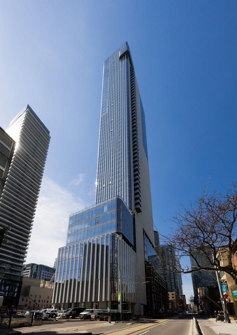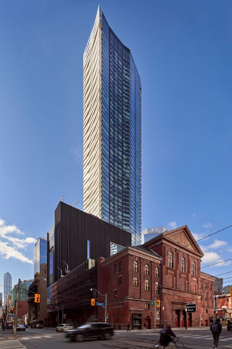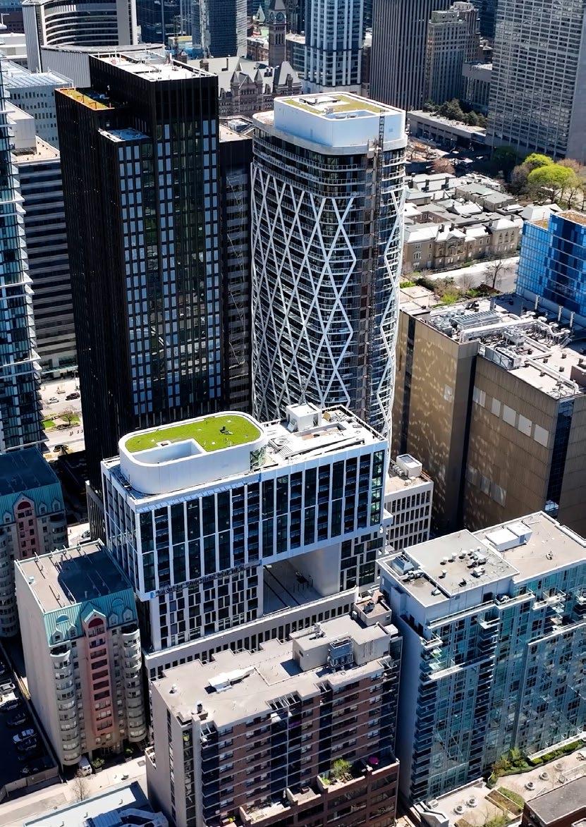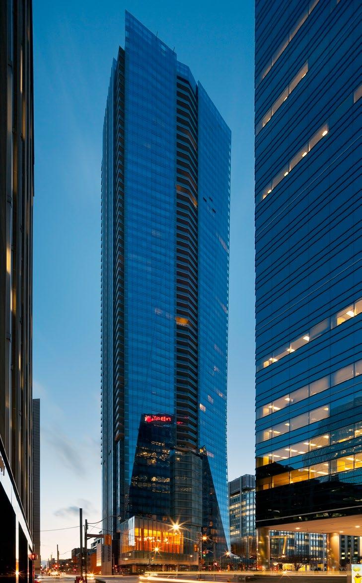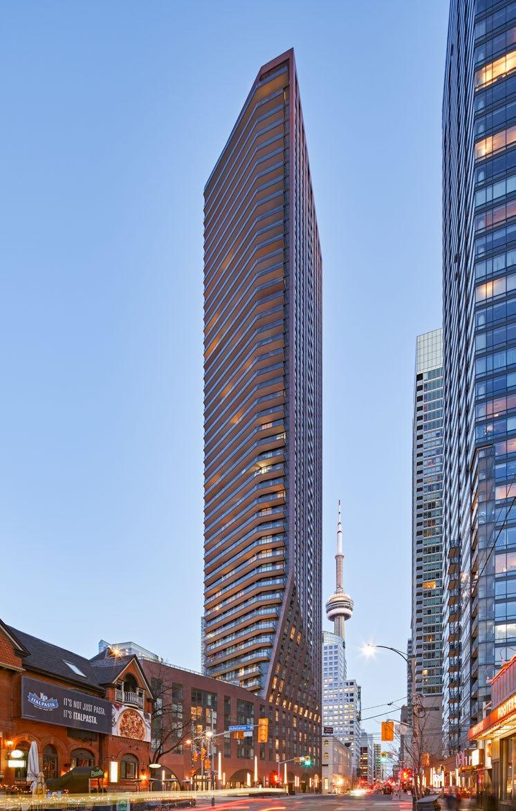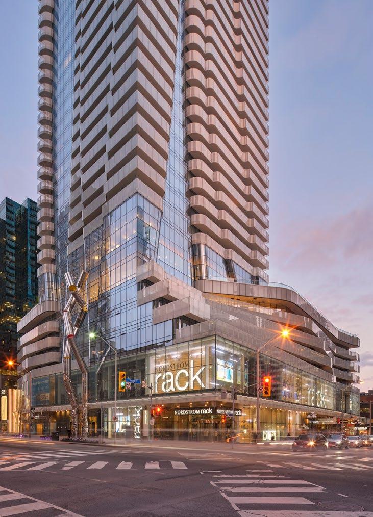 This mixed-use tower offers a public square, allowing space for gathering and cultural programming on the downtown Toronto site.
