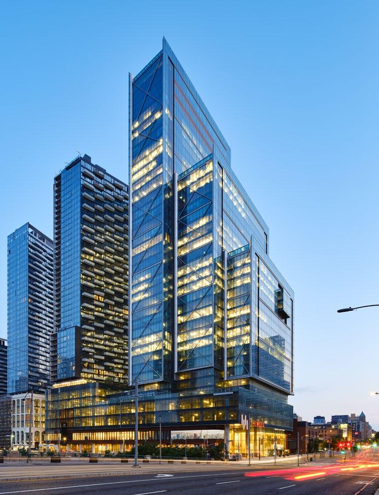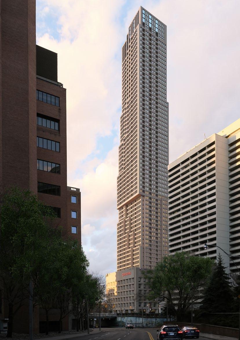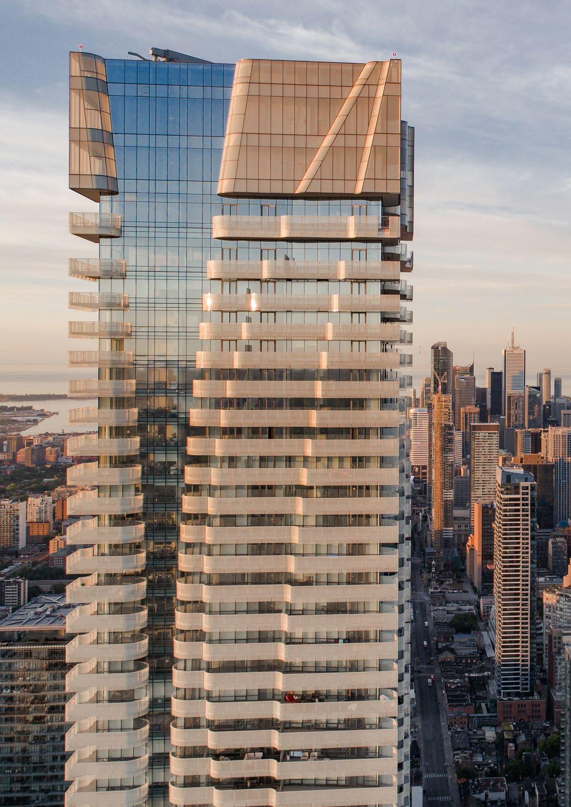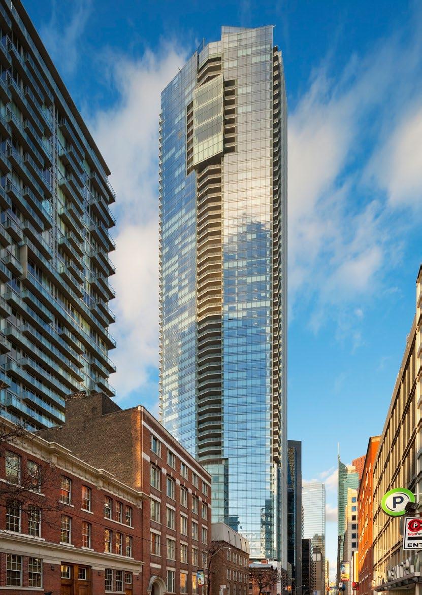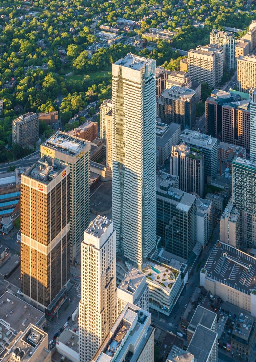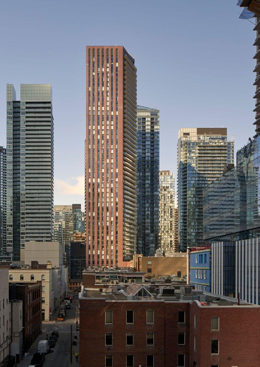 This mixed-use tower offers a public square, allowing space for gathering and cultural programming on the downtown Toronto site.