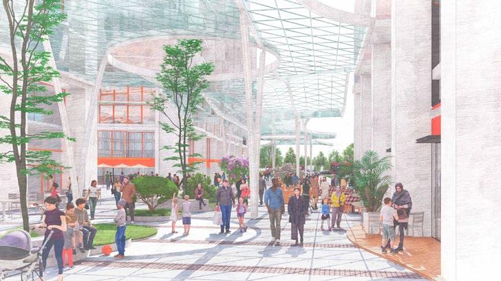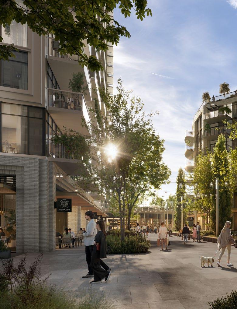 The public realm is revitalized to serve the existing community, forming an accessible and dynamic pedestrian space.