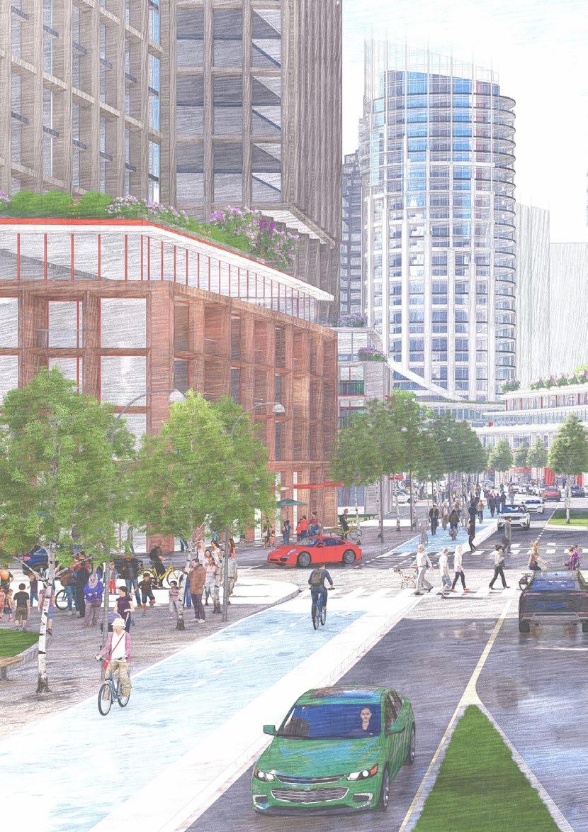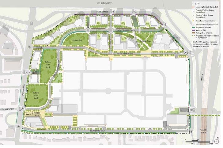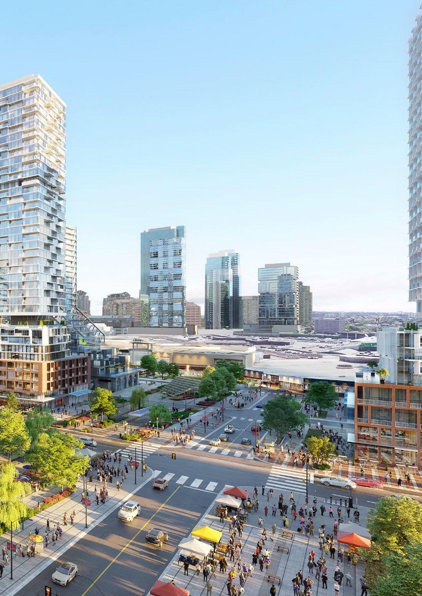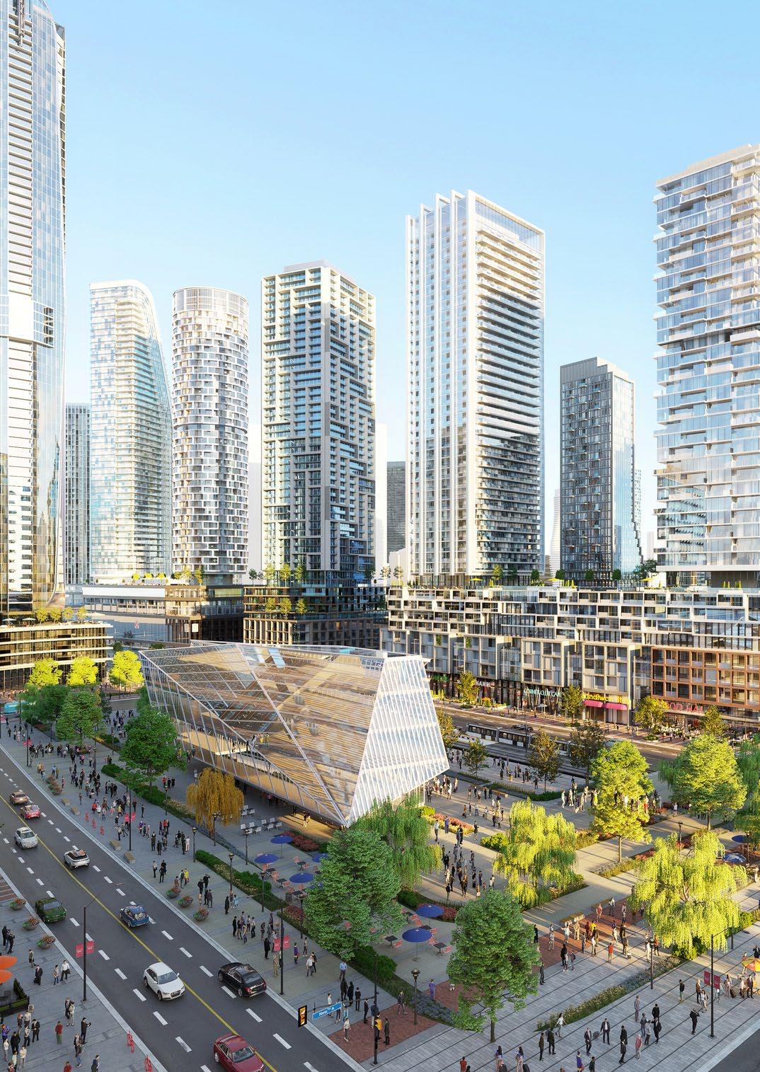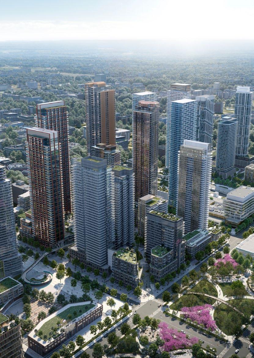 “The 18 million-square-foot master-planned mixed-use development is being touted as a “neighbourhood of the future”. Swaths of parking lots will be densified with 37 residential towers housing more than 18,000 residential units that will become home to an estimated 35,000 residents when completed.”