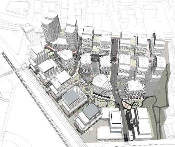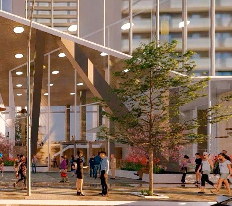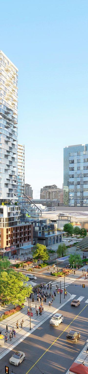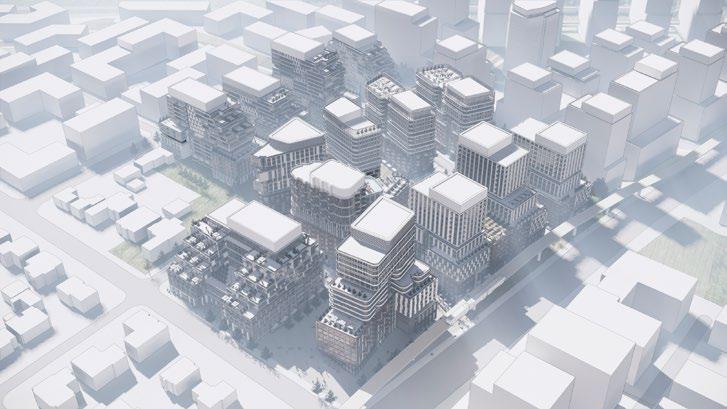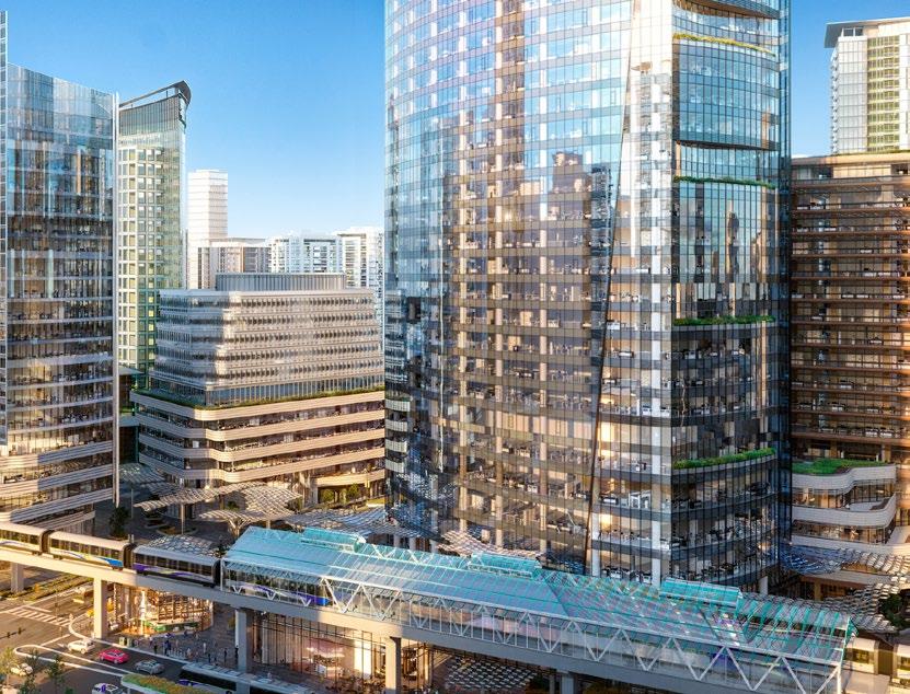 Surrey Centre Block aims to shape the future of transit-oriented development while leveraging its potential as the geographic heart of Metro Vancouver. Building upon the site master plan developed in collaboration with Urban Strategies, Phases 1 and 2 of the Centre Block will respond to the city’s anticipated growth as a significant employment and cultural hub. Adhering to core principles of northsouth connectivity, high-quality public spaces, active streetscapes, and transit accessibility, the project will introduce two new office towers animated by retail at grade and institutional/civic uses on lower floors, with pedestrian-focused landscaped spaces woven throughout.
