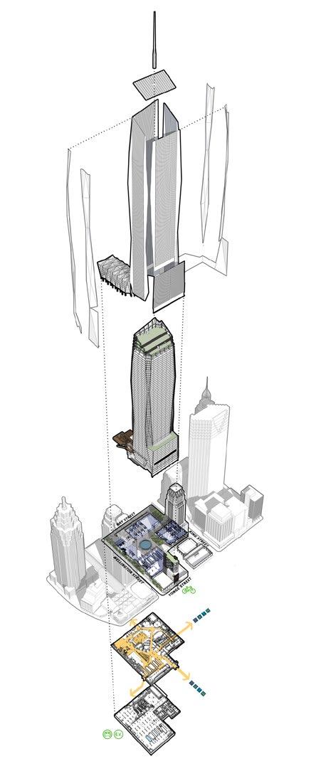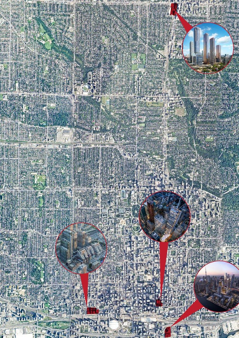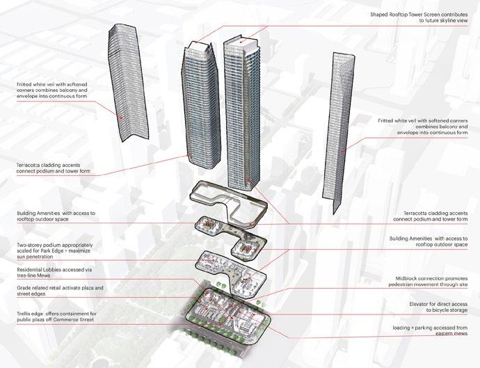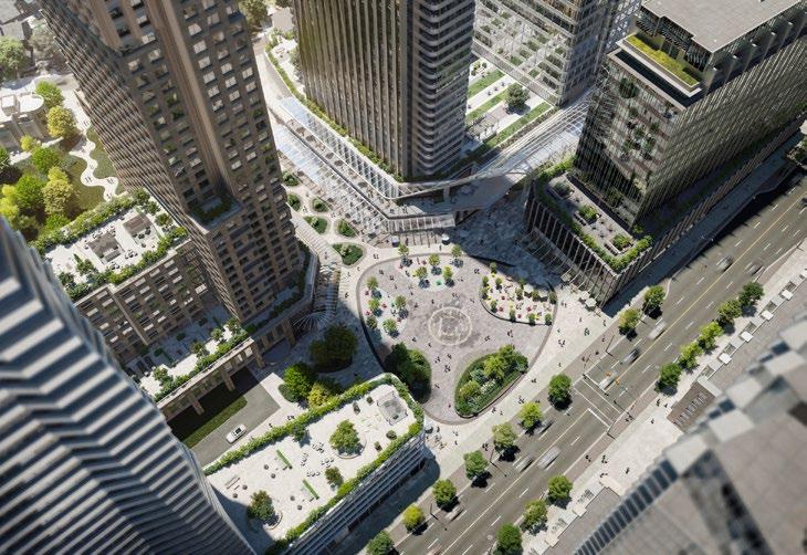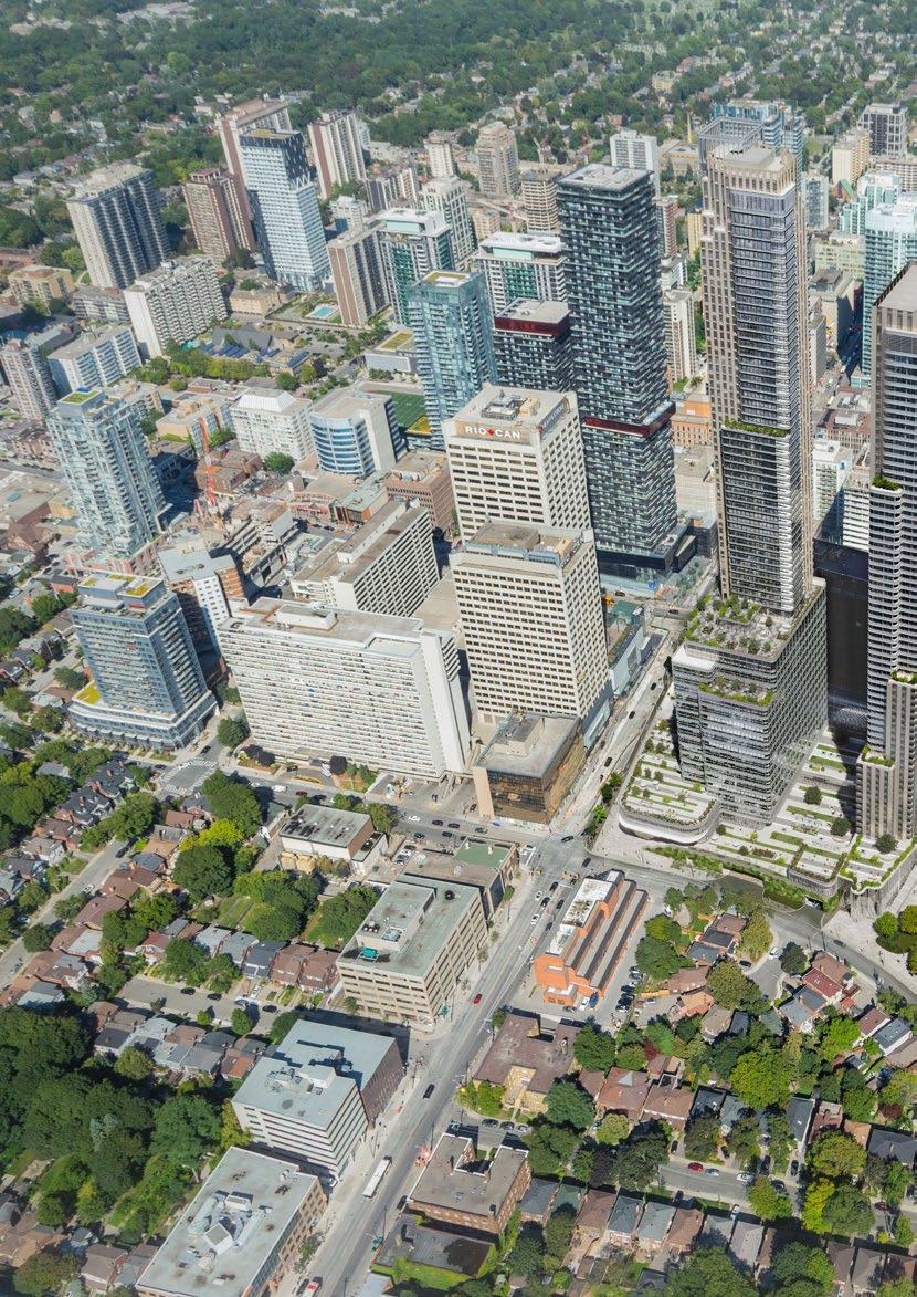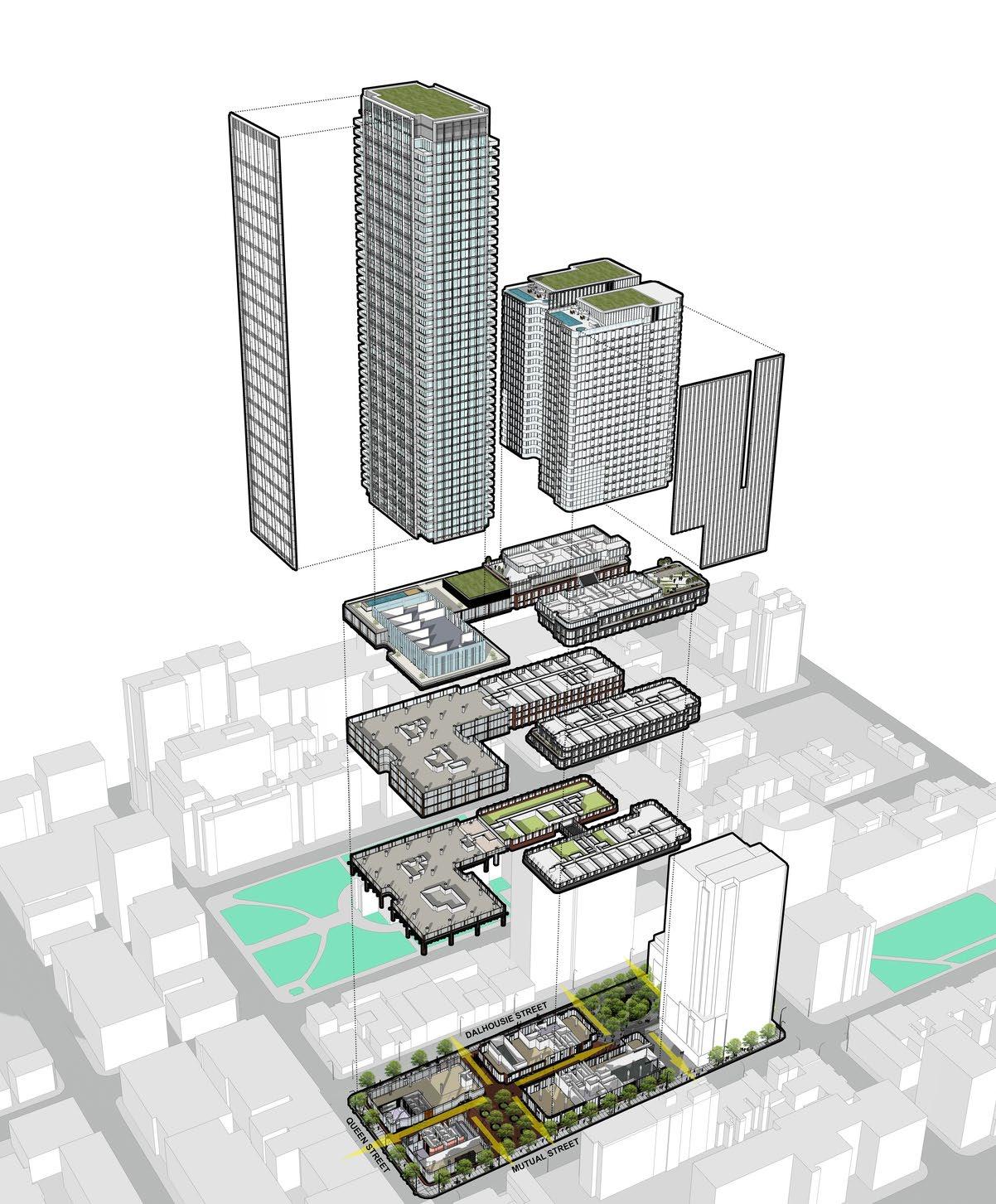 Integrated vertical urbanism that will a create unique, multi-functional urban complex that highlights the best qualities of Torontohigh density towers, quality public space, and a seamless integration into the existing urban fabric.