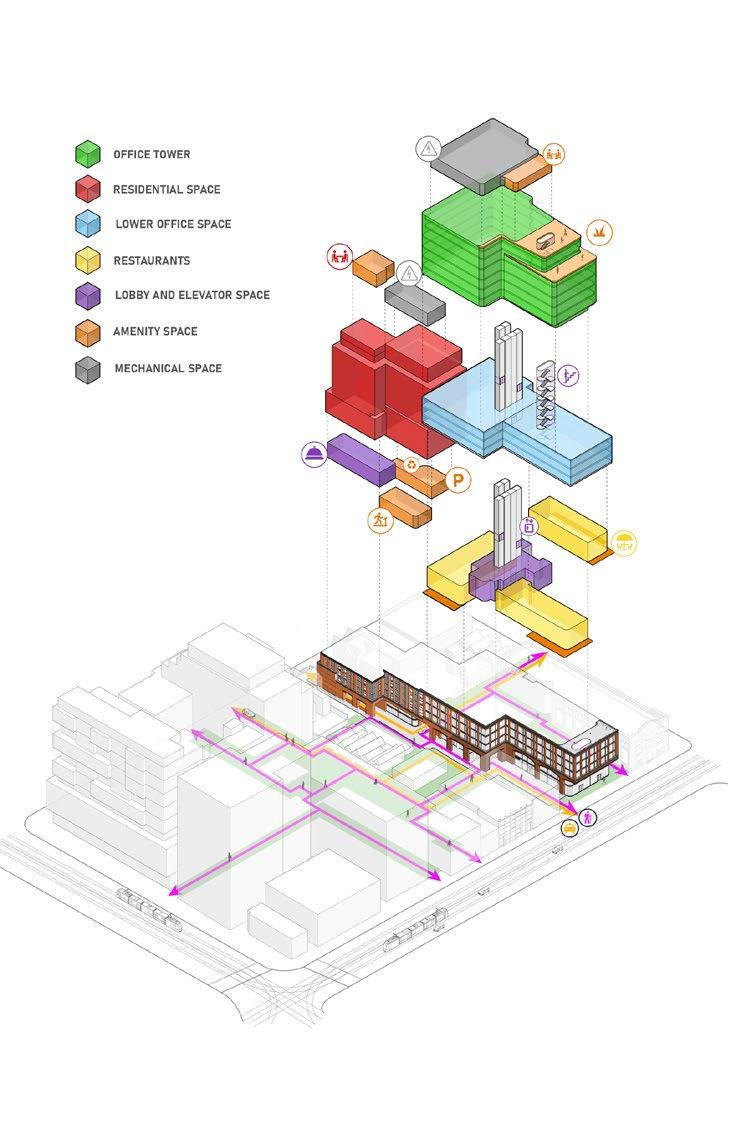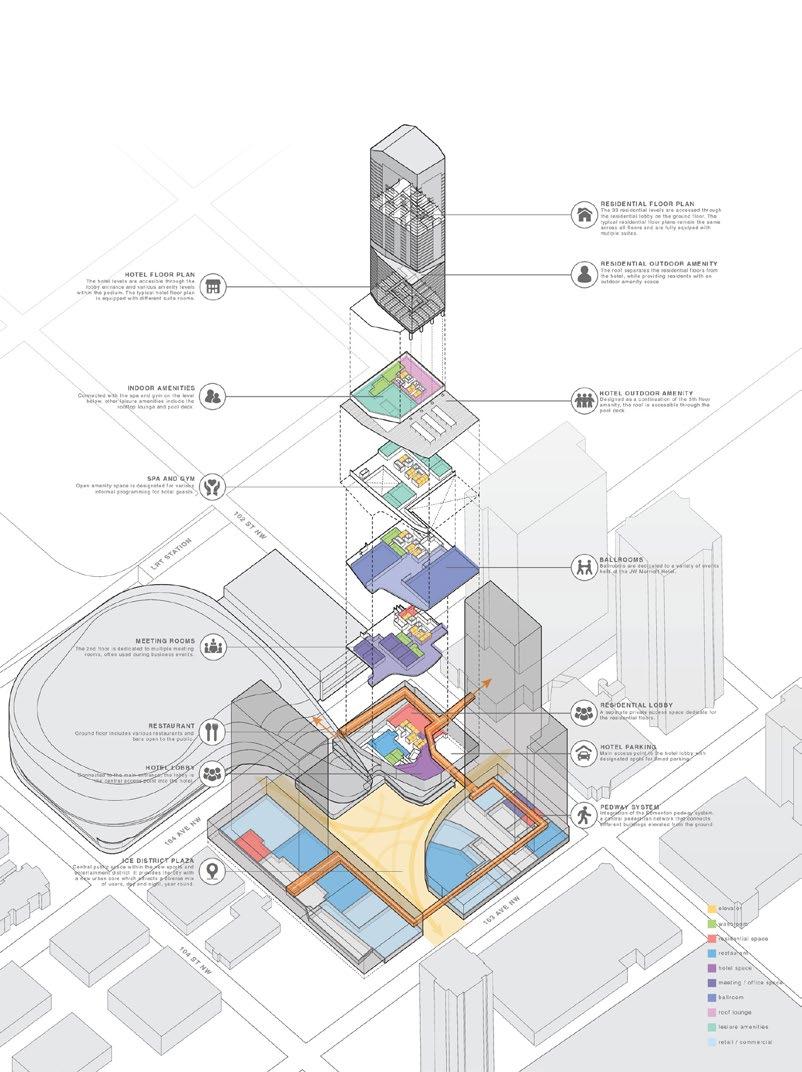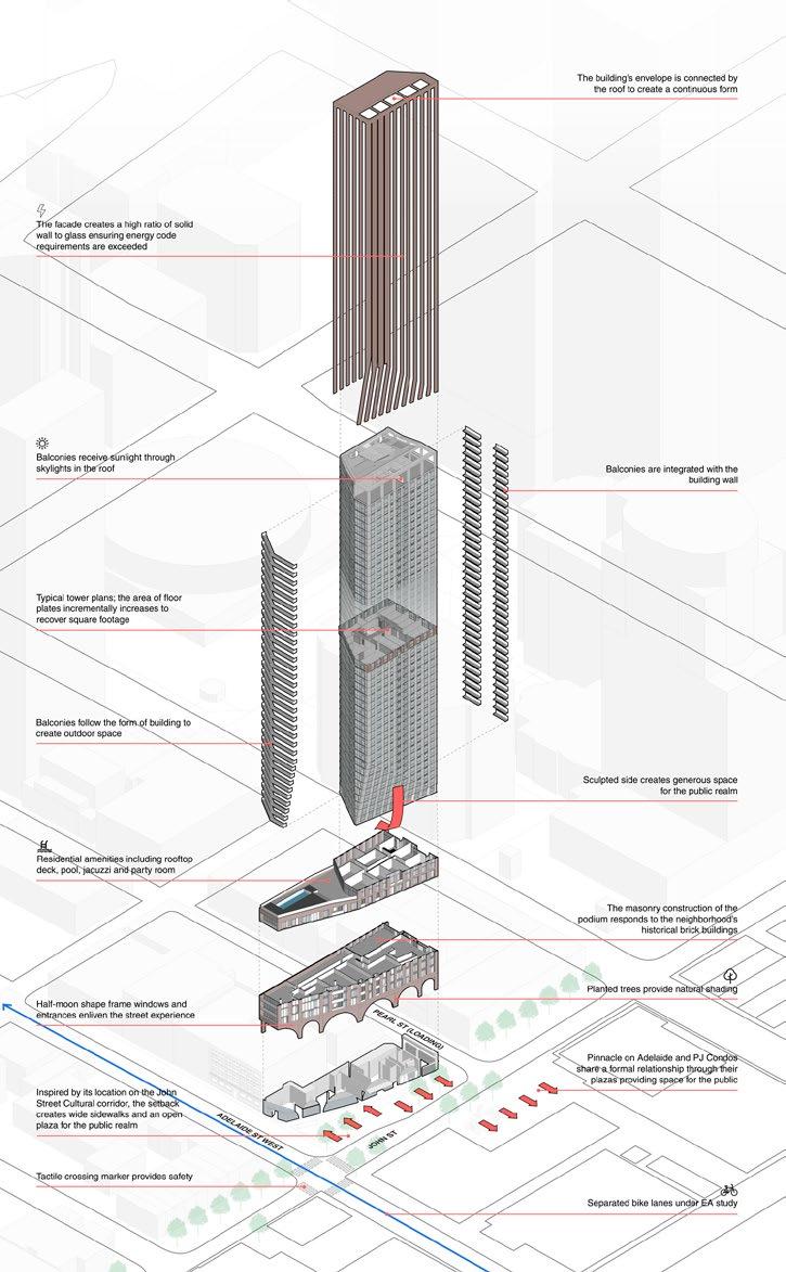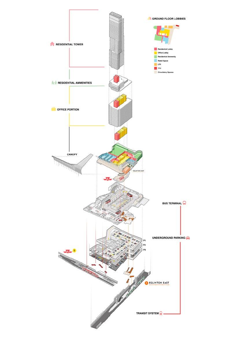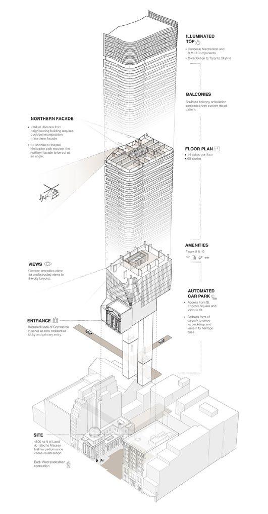 Integrated vertical urbanism that will a create unique, multi-functional urban complex that highlights the best qualities of Torontohigh density towers, quality public space, and a seamless integration into the existing urban fabric.