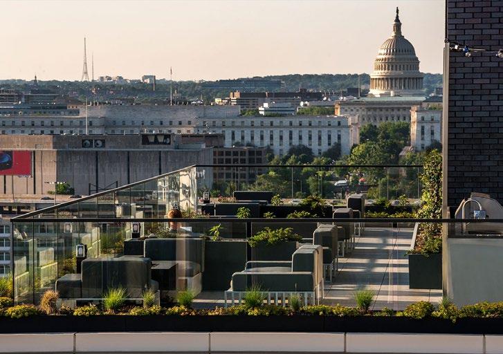 The project was designed to capitalize on both the street-related energy of the adjacent stadium as well as the iconic views of the Capitol and surrounding memorials to the north west. As such, the western side of the building is carved out to create an elevated open courtyard allowing for ample daylight to penetrate the core of the building while maximizing western views from as many units as possible. In addition, the upper levels of the building step back at all sides, creating units with generous terraces. The building is capped by an amenity penthouse which boasts unique opportunities for its residents; panoramic views of the city from its infinity pool as well as stadium style seating overlooking the baseball field below. Opportunities for green spaces are maximized throughout the building.