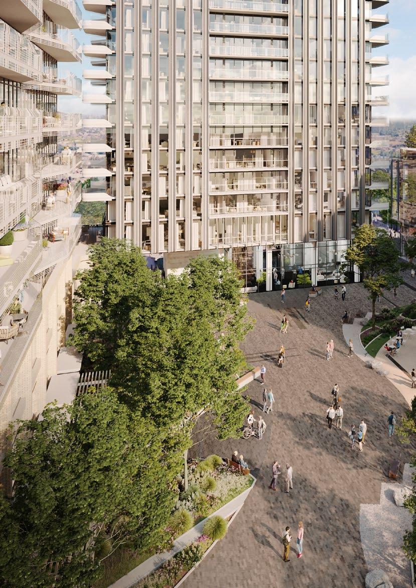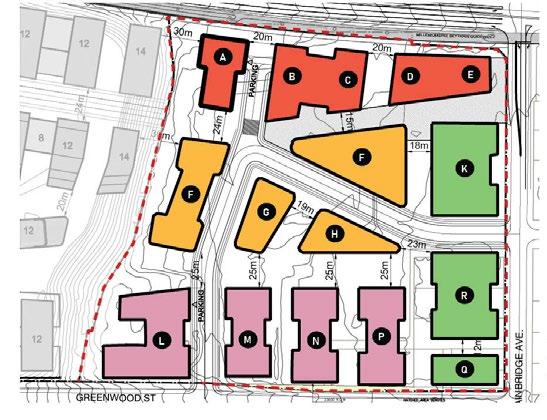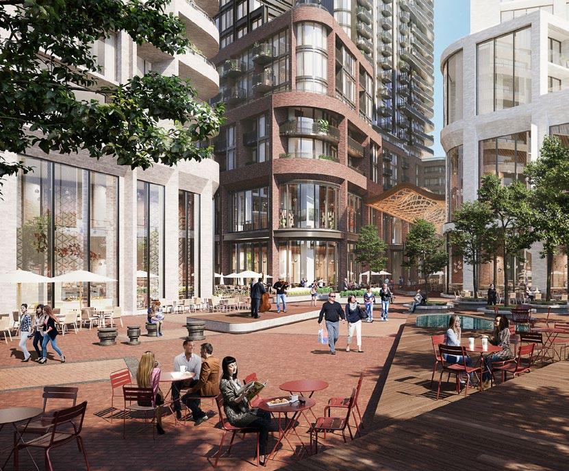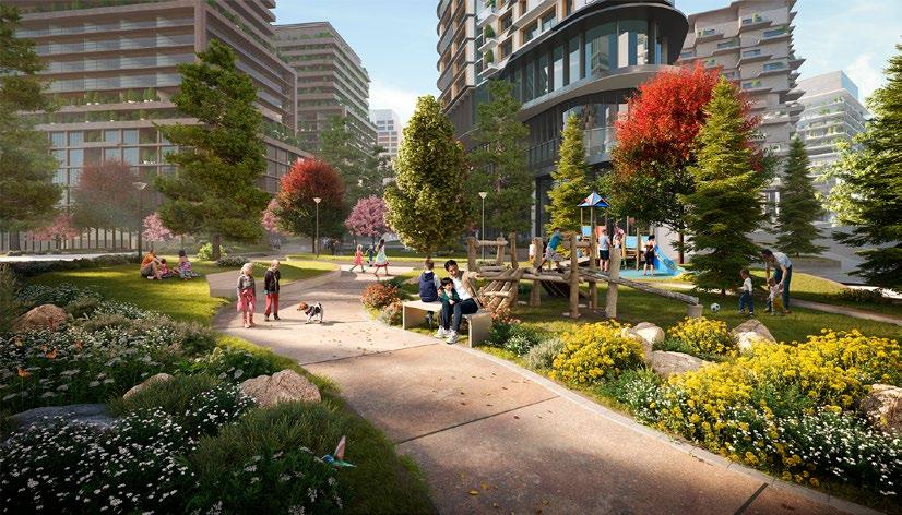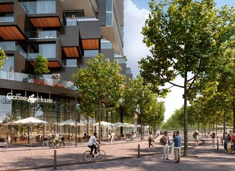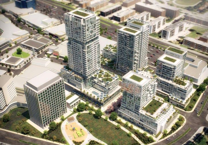 existing site, there will be no lapse in services. During construction, the existing community centre will remain until the new one is complete, and the existing grocery store, within the Galleria Mall, will stay until a new grocery store is built. The buildings will be designed to reflect the existing neighbourhood context while being integrated into the vast networks of landscaped space planned throughout the development.