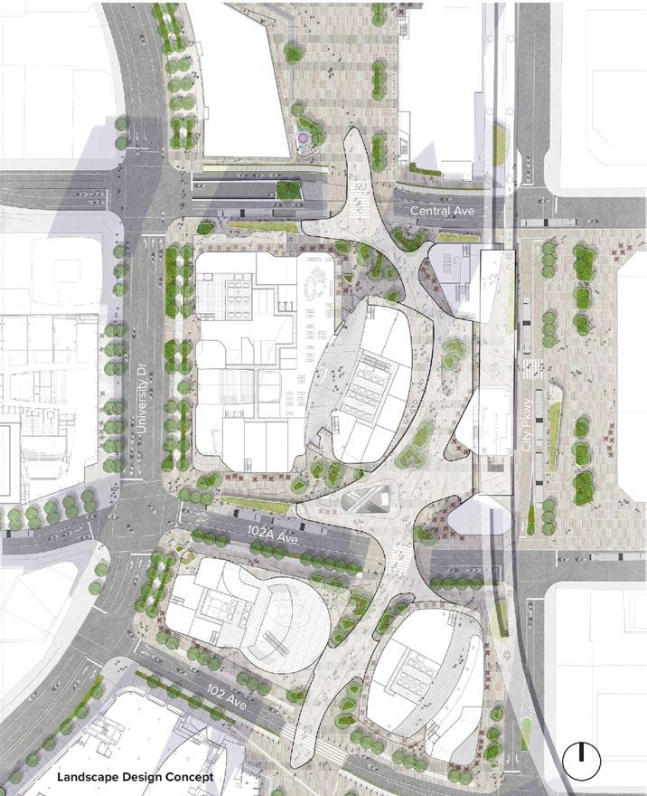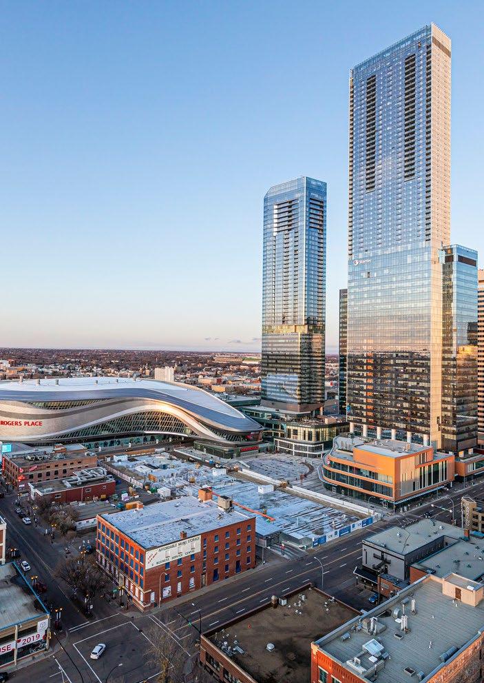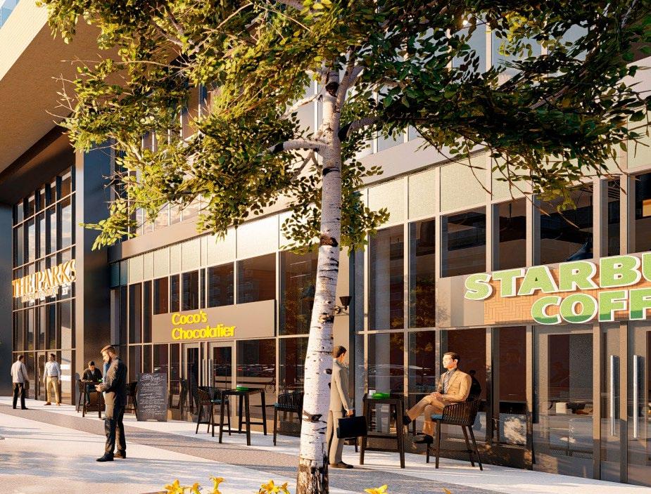 The Parks is a mixed-use development located at the corner of Jasper Avenue and 108 Street NW (also referred to as Capital Boulevard) in downtown Edmonton. Both streets are important roadways and destinations, distinguished by their location and unique characteristics. Jasper Avenue has been recently designated as Edmonton’s premier Main Street, the city plans to enhance the street to form a high-quality pedestrian experience with wide sidewalks, improved landscaping, and refined streetscape elements. Capital Boulevard is a visual and physical extension of the Legislature grounds into downtown Edmonton. This street features wide tree-lined sidewalks, mid-block pedestrian crossings, and mid-street islands with permanent art installations. Directly to the northeast of the project site, the Warehouse Campus Neighbourhood Central Park is planned as a large urban oasis in Edmonton’s downtown. The Parks will build on the enhanced appearance and improved walkability of the neighbourhood.