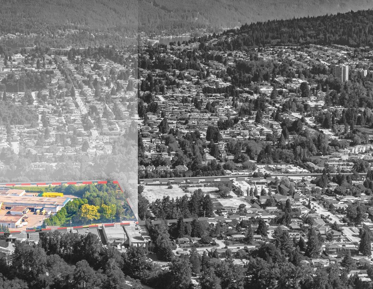 The master plan for Burnaby Lake Village aims to revitalize 19 acres of industrial space into a vibrant mixed-use community. Framed by the Lougheed Highway to the north, a 1000-acre park to the south, an escarpment to the east, and the Sperling-Burnaby Lake SkyTrain station to the west, the wedge-shaped site poses several design opportunities. Responding to the site’s conditions, a mix of building typologies were developed to achieve hierarchies in built form that will articulate the experience at street level. A plaza marks the entryway into the development, creating a direct connection between the community and local public transit. At this plaza, the Esplanade and Serpentine pathways merge, forming diverse, pedestrian-oriented, paths of travel through the site. The Esplanade is designed as an urban high street, formally lined by mixed use buildings, while the Serpentine is a meandering, pedestrian only, pathway that makes its way across the development, connecting to public amenities throughout the community.