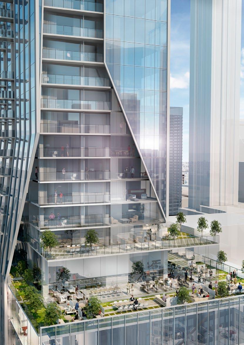 Phases 4 and 5 will introduce two new office towers with extensive retail on the first two levels (22 and 40 storeys) to the South Block, including recladding the existing Toronto Star building. Residents and visitors will have access to outdoor amenities and public art, including two new public parks planned adjacent to the project site.