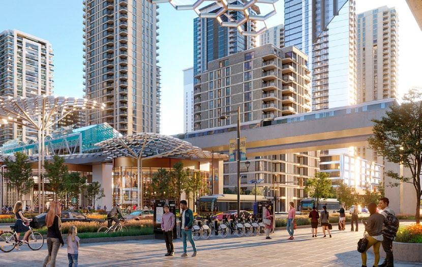 to the city’s anticipated growth, this is a true transit-oriented development that leverages its future potential as a pedestrian-focused hub.