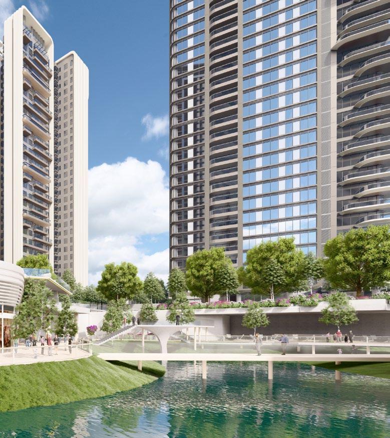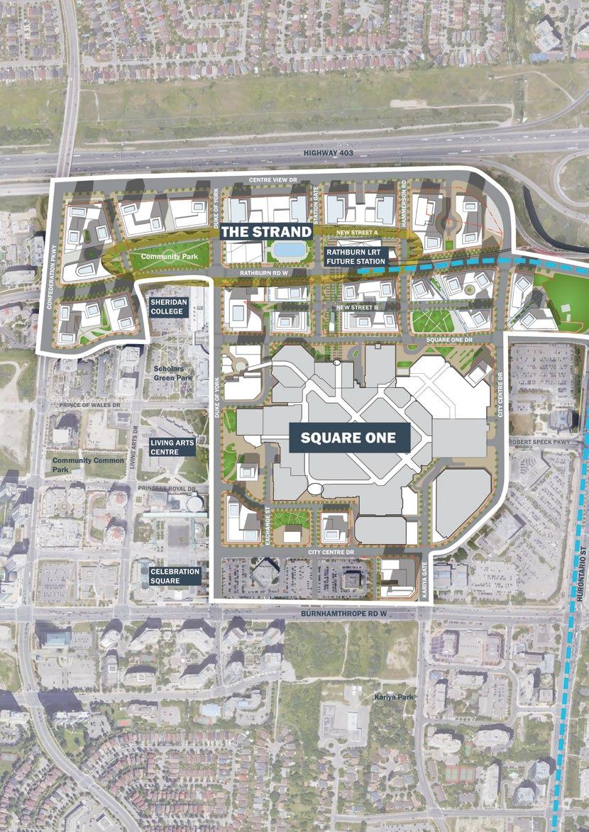 pedestrian and transit oriented development that will transform the blocks surrounding Square One Shopping Centre into a vibrant community and contribute to the growth of Mississauga’s downtown district.