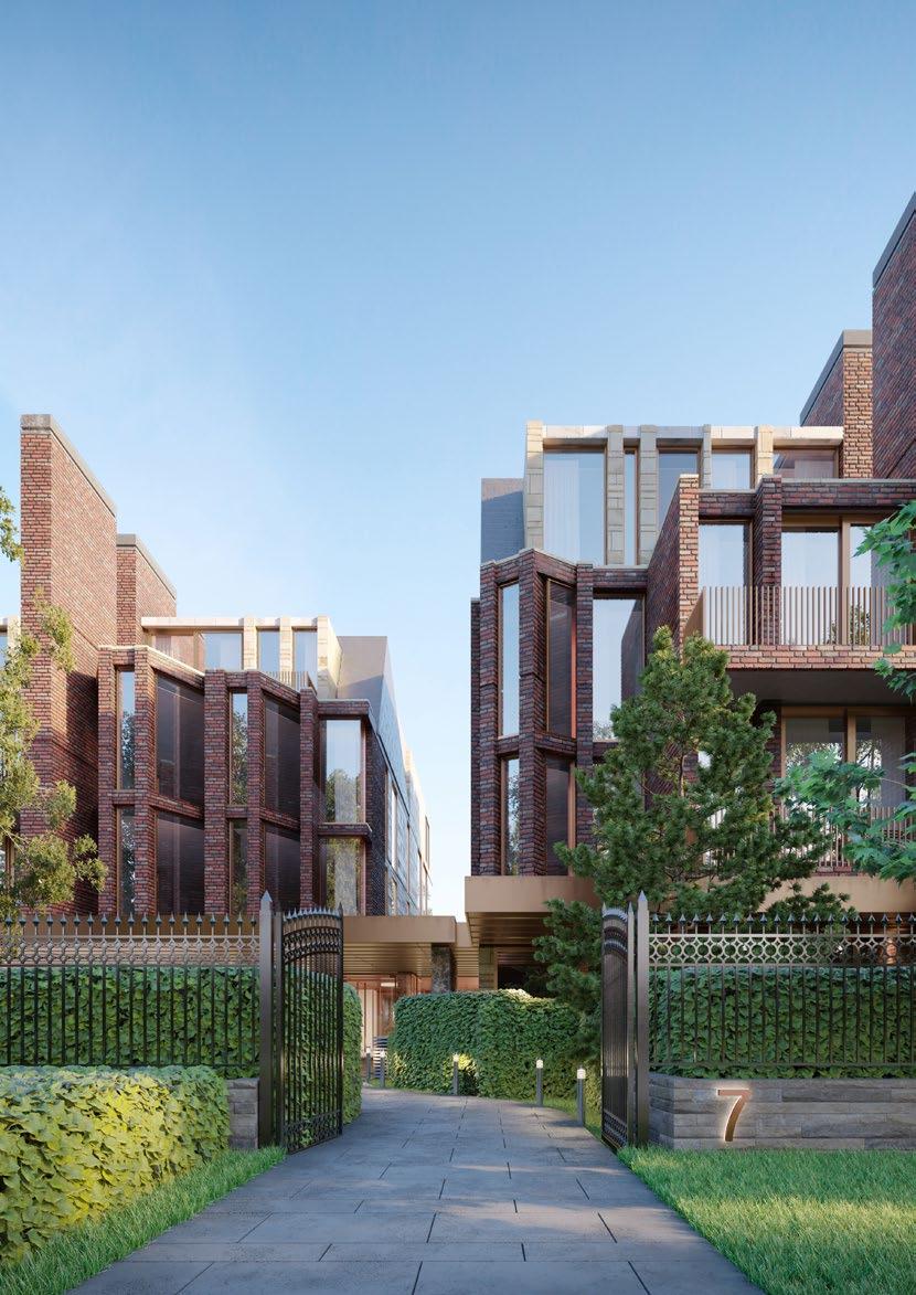 The project blends the area’s traditional brick and stone materiality with an unconventional massing custom-tailored to the low-rise conditions of the affluent neighbourhood. The use of brick dividing walls—which reference the scale and materiality of Edwardian houses— serves to visually break up the structures, creating an architectural language that speaks to the area’s older homes. The project’s east volume pulls back from the street, preserving the views from nearby properties and the fourth level is clad in pale limestone, intended to visually reduce the mass of the building.