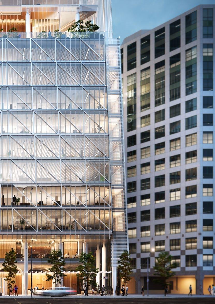 The plan for the redevelopment of Commerce Court aims to transform this historic property in the heart of Toronto’s Financial District. The site is distinguished by its rich history and heritage importance. This plan aims to preserve the relevant historic aspects of the existing East tower (CCE), with the north and south façade of CCE maintained within the design of the complex. These considerations led to a rationalized tower and Pavilion form, adopting a Cartesian grid to respectfully sit within the larger campus of Commerce Court Buildings. 56 Yonge, the Hotel Victoria, will be retained without the vertical expansion of office space above. It will undergo a façade revitalization and will incorporate a new connection to Commerce Court at grade.