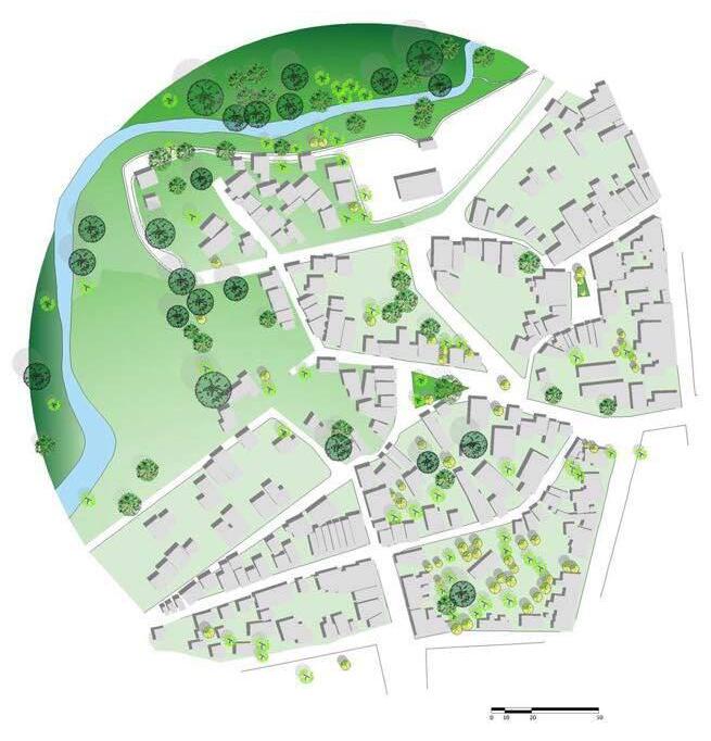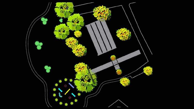 Omapadevegetaçãomostraadistribuiçãodasárvorese arbustos em uma área. Perto do rio, há agrupamentos densos de árvores ao longo de suas margens, enquanto aolongodaáreadoprojetoelasestãomaisespalhadas.O curso do rio é visível pela vegetação densa ao longo de suasmargens.