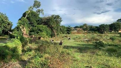 O terreno próximo à Praça de Eventos, na cidade de Goiás, revela uma topografia diversificada e característica de sua localização próxima ao rio. À medida que nos aproximamos do rio, encontramos uma parte baixa do terreno, muitas vezes alagada, que abriga uma nascente. Essa área mais baixa, propensa a alagamentos sazonais, cria uma paisagem úmida e prolífica, onde avegetaçãosebeneficiadaáguaabundante.
