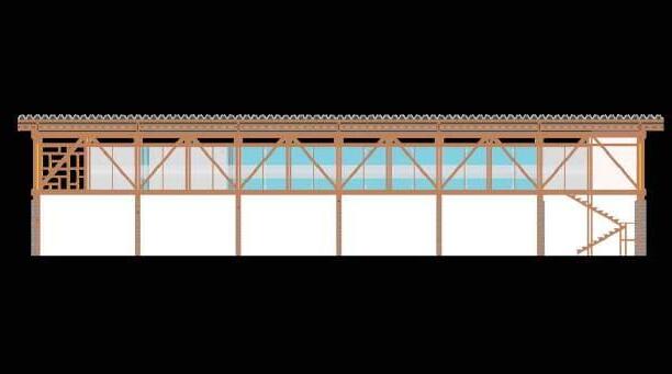 Destinado às atividades de gestão e manutenção do centro cultural, esse prédio é projetadopararepresentartodososconceitos explorados pela presente proposta de intervenção. Nota-se uma malha estrutural marcante, somada ao trabalho em madeira que dá forma ao prédio. Além disso, as cores são exploradas para produzir um ambiente acolhedordestinado,dentreoutrasatividades possíveis,aotrabalho.