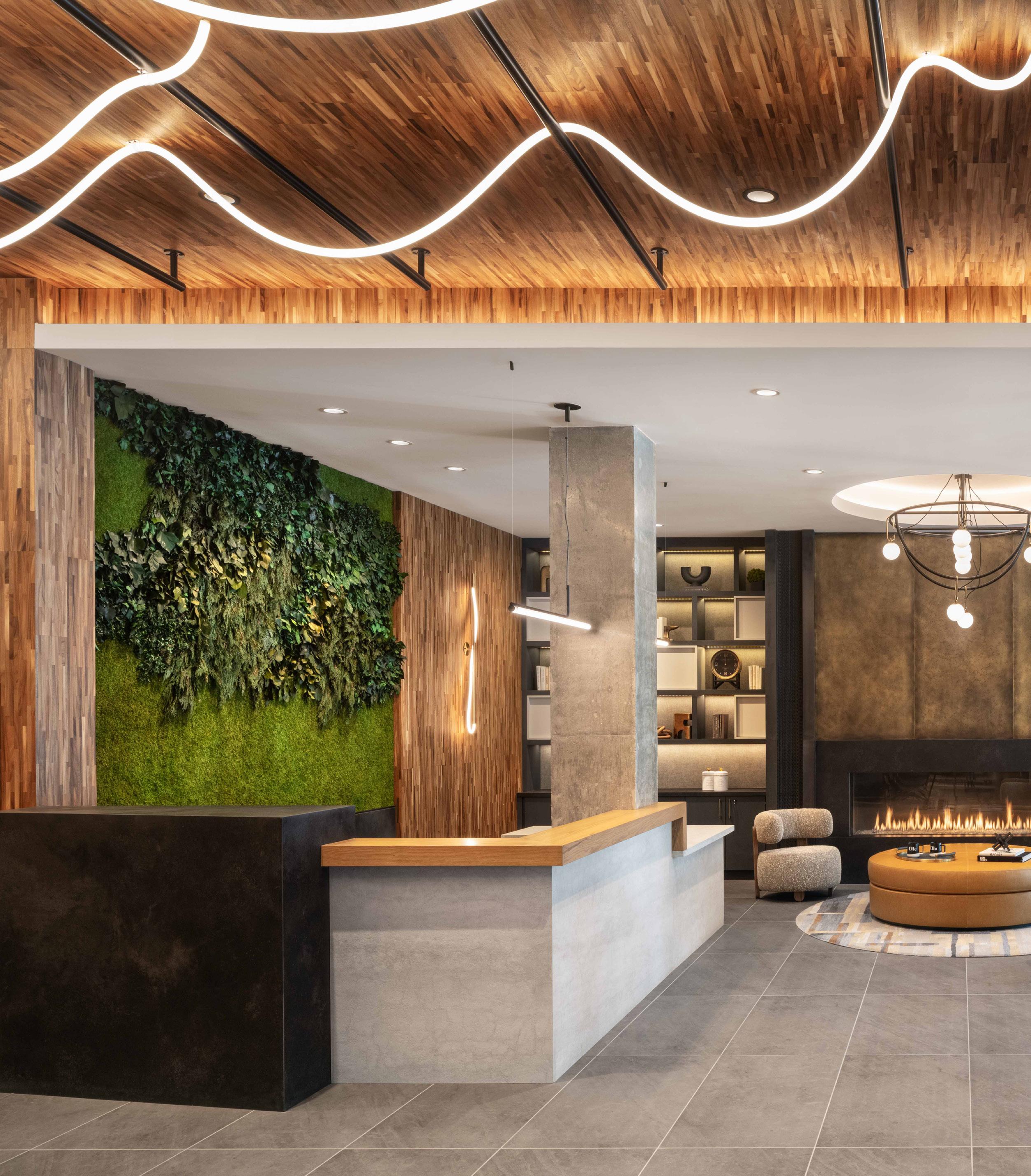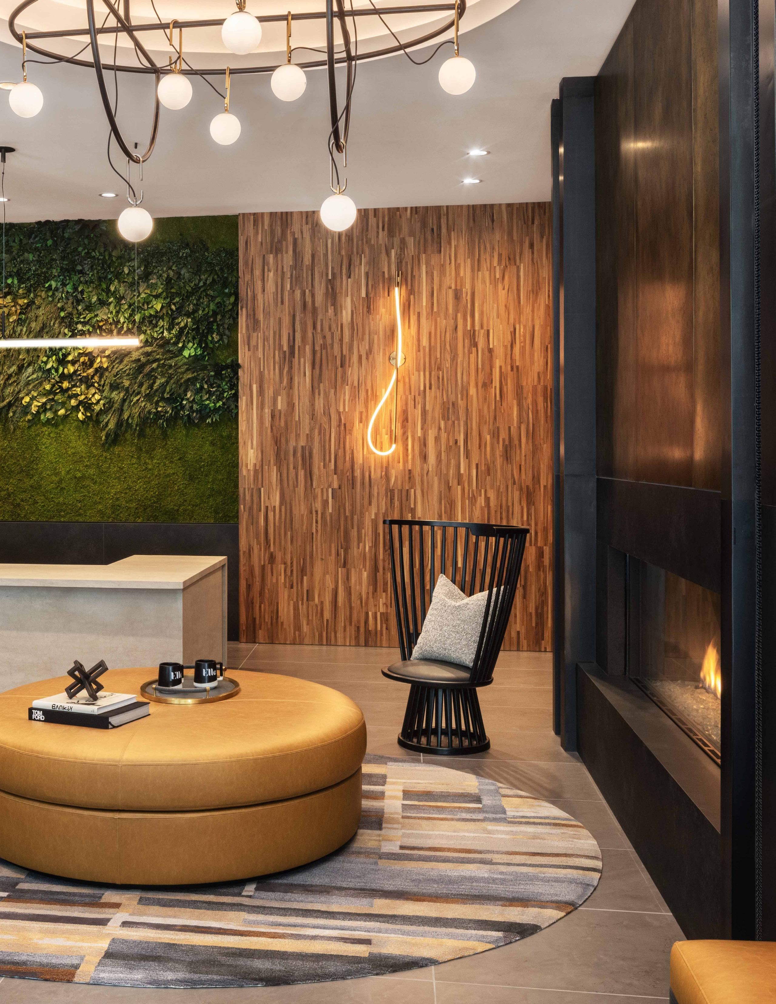 Style: : Blends curated comfort with purposeful luxury, offering remote workspaces. The interior design promotes happiness and wellness through light-filled spaces, natural greenery, sustainable finishes, and thoughtful details. A welcoming fireplace and bubbling water feature set the tone, creating a serene, nature-connected environment that builds community and elevates everyday living.