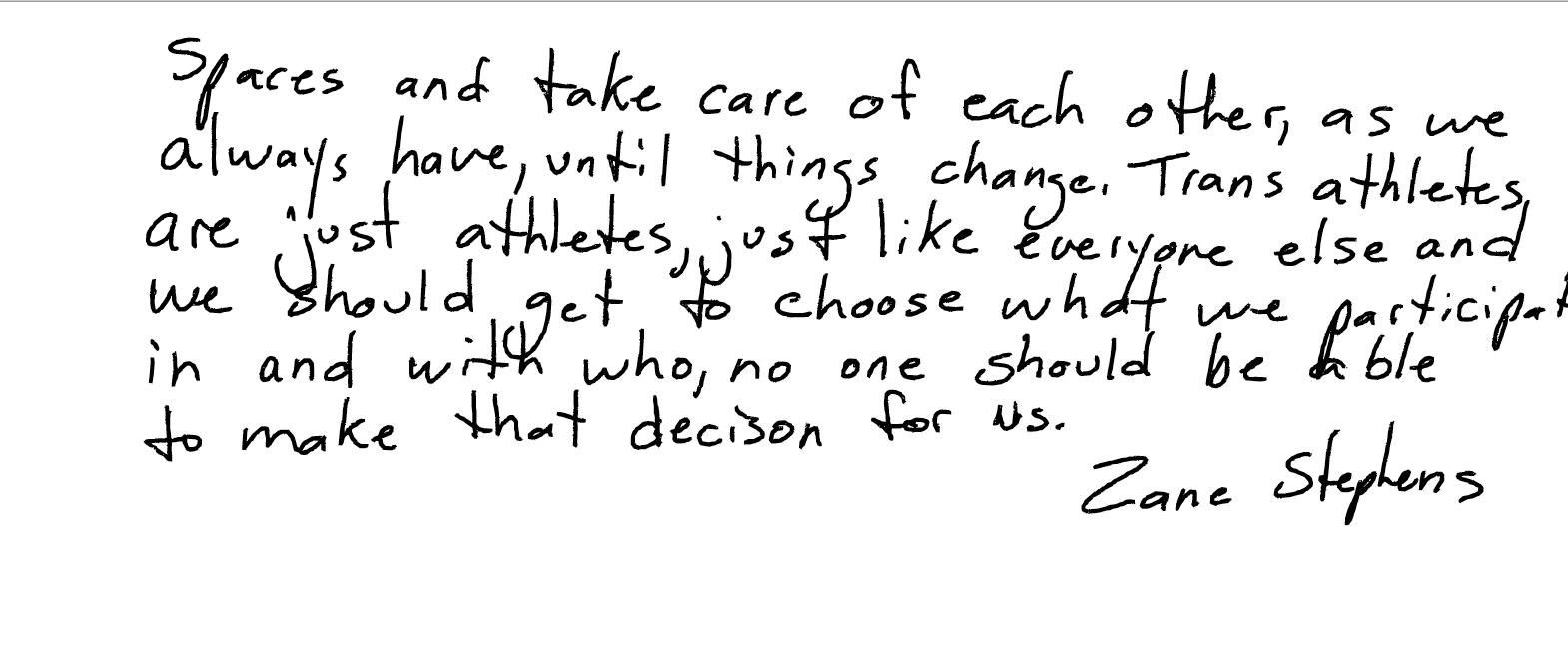 I have a trans nephew and he plays sports. I am concerned about the obstacles he will encounter as he enters high school. I want the cis-dominant world to realize that especially at younger ages, everyone of all genders has the right to a