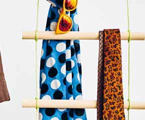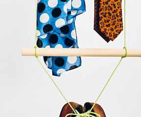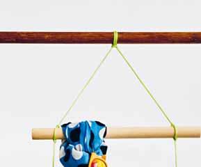 Wenn du mehrere Kleidungsstücke, Krawatten und Tücher an eine Garderobenstange hängen willst, haben wir hier eine praktische Lösung: Mithilfe einiger Rundstäbe und eines Seils machst du dir schnell einen GarderobenOrganizer, genau passend für deinen Bedarf. Je nachdem, welchen Knoten du zu Beginn verwendest, kann der Organizer parallel zur Stange ( Kelligstek ) oder im rechten Winkel dazu hängen ( doppelterhalberSchlagmit einemextrahalbenSchlag). Mit Marlspiekerschlag werden die Leiterstäbe an jedem Ende fixiert. Diese sind auch ideale Knoten, wenn du etwas richtig fest anziehen musst, du dir dabei das Seil aber nicht um die Hand wickeln willst.