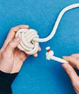 Die Einsatzgebiete sind vielfältig: hängende Lampen und Blumentöpfe ganz einfach in der Höhe verstellen, eine Hängematte befestigen, die Trinkflasche zum Training mitnehmen, Braten und Kräuter in der Küche sicher zusammenbinden, das Fahrrad an der Decke aufhängen und Spielzeug für Haustiere knüpfen – mit einer Portion Knotenkompetenz lassen sich viele Probleme auf elegante und praktische Weise lösen.