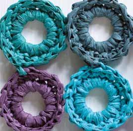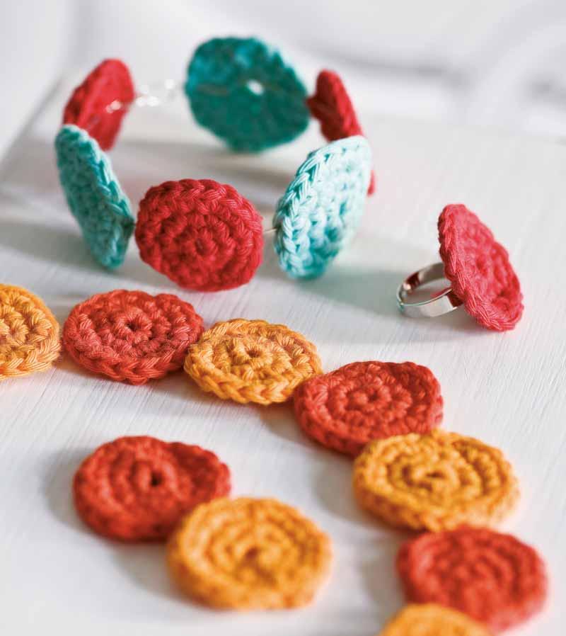 Wie auf Seite 21 erklärt, häkelst du Kreise in verschiedenen Farben. Die Kreise müssen gar nicht besonders groß sein. Drei Häkelrunden genügen.