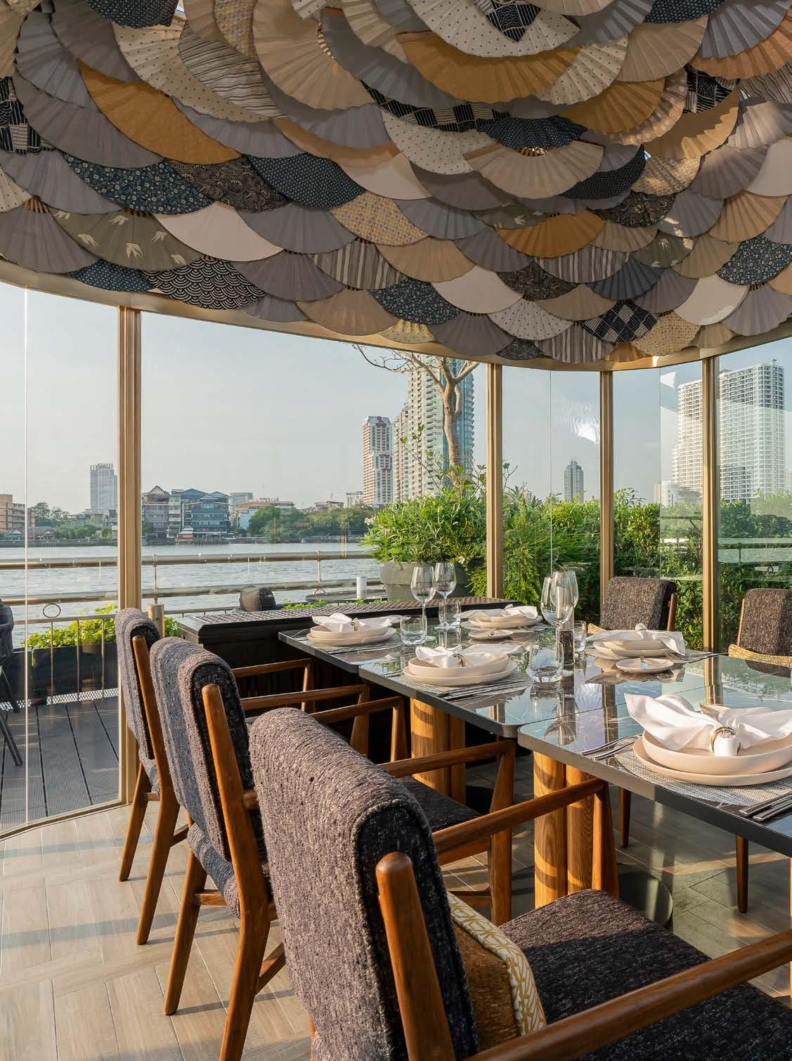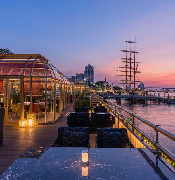Guests can unwind in five elegant private dining pavilions, sip signature cocktails and fine wines at the vibrant bar, or savor creative bites at the open kitchen with casual counterstyle seating, all enclosed in a glistening glasshouse. Guests can also unwind on the banks of the river at the alfresco terrace. This
