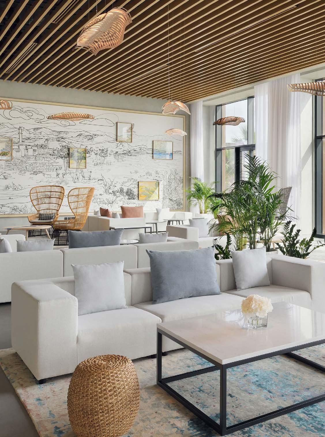 spaces that effortlessly merge with the outdoors through oversized windows, and an array of thriving plants.