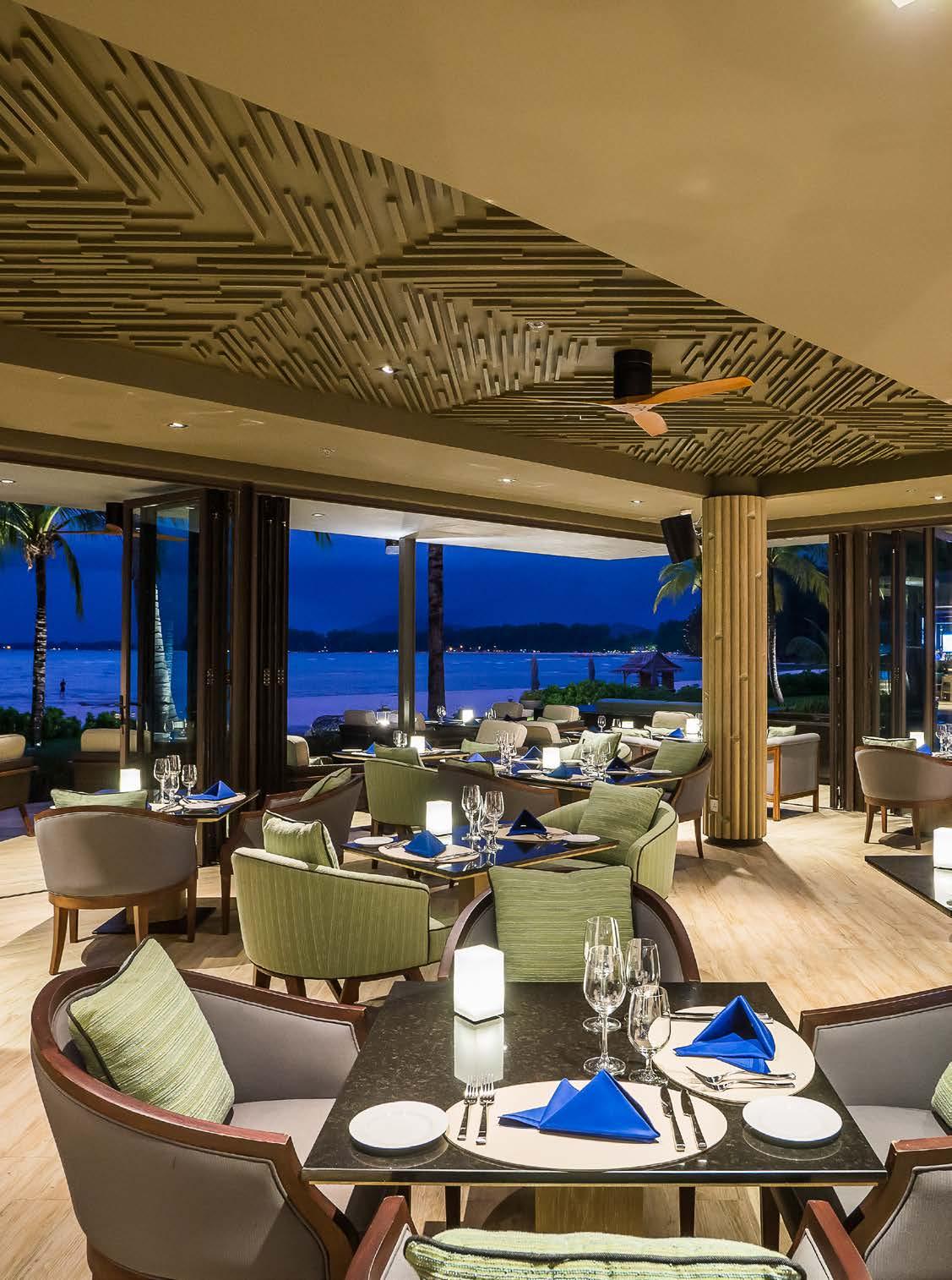 The signature restaurant serves an international lunch and dinner menu that showcases the finest seafood and steaks, often sourced from local suppliers including Phuket fishermen, and always cooked to perfection by the expert chefs.