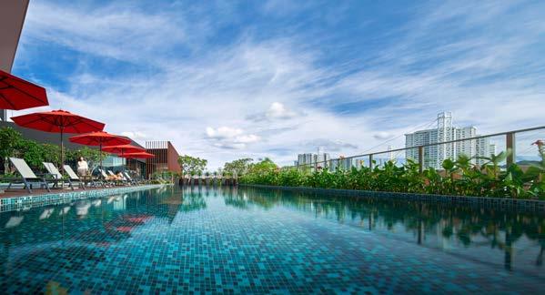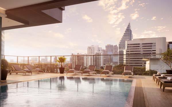 extension project, the hotel opened up to a large landscaped area; Le Jardin offers a 600sqm pool surrounded by seven private pavilions and an outdoor restaurant.