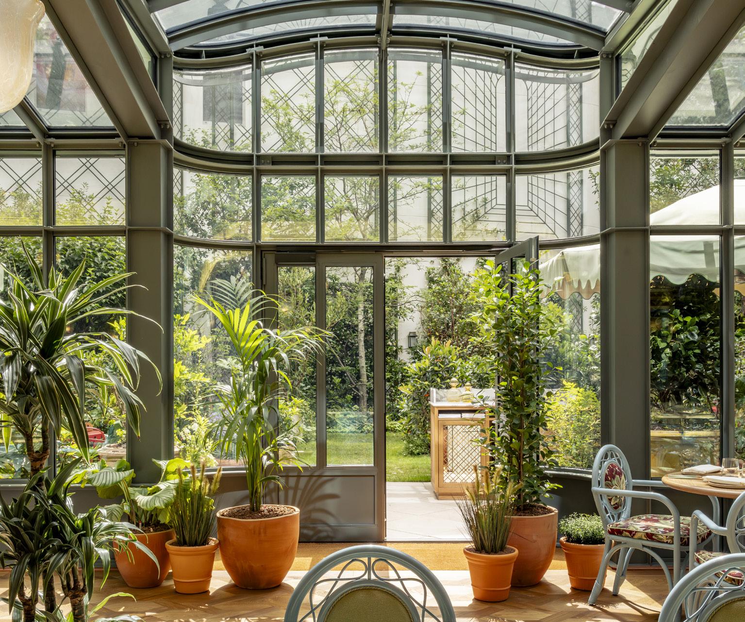 Le Grand Mazarin is, fittingly, a hotel as chic as the neighborhood it’s located in: Le Marais. Martin Brudnizki was the perfect designer to create the artistic, elegantly over-the-top atmosphere, which evokes the 17thcentury literary salons of Le Marais, where high society doyennes would host gatherings in their private mansions. On site, there are 61 rooms and suites; a restaurant, Boubalé, which serves up Ashkenazi cuisine courtesy of Michelin-starred Israeli chef Assaf Granit; a secret winter garden; wellness area; and swimming pool, all of which reflect the designer’s sumptuous and intimate vision via antique furniture, vintage objects, seashells embedded in the wallpaper, or custom-designed rugs with baroque details. In the hotel’s lobby, a wedding wardrobe typical of 19th-century Europe sets the tone, which Brudnizki himself discovered in England. 17 Rue de la Verrerie, 75004